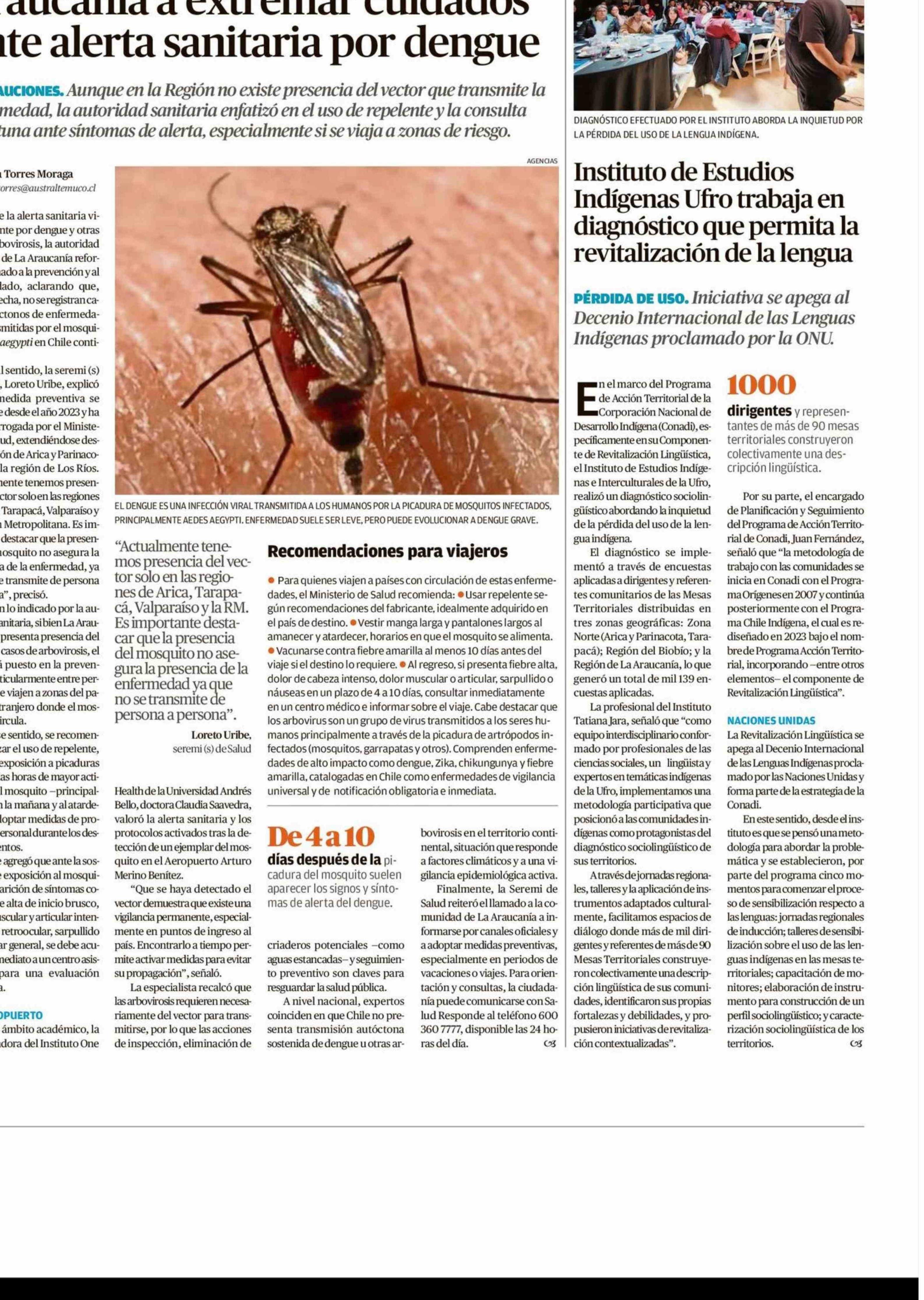 Título: Salud llama a viajeros de La Araucanía a extremar cuidados ante alerta sanitaria por dengue