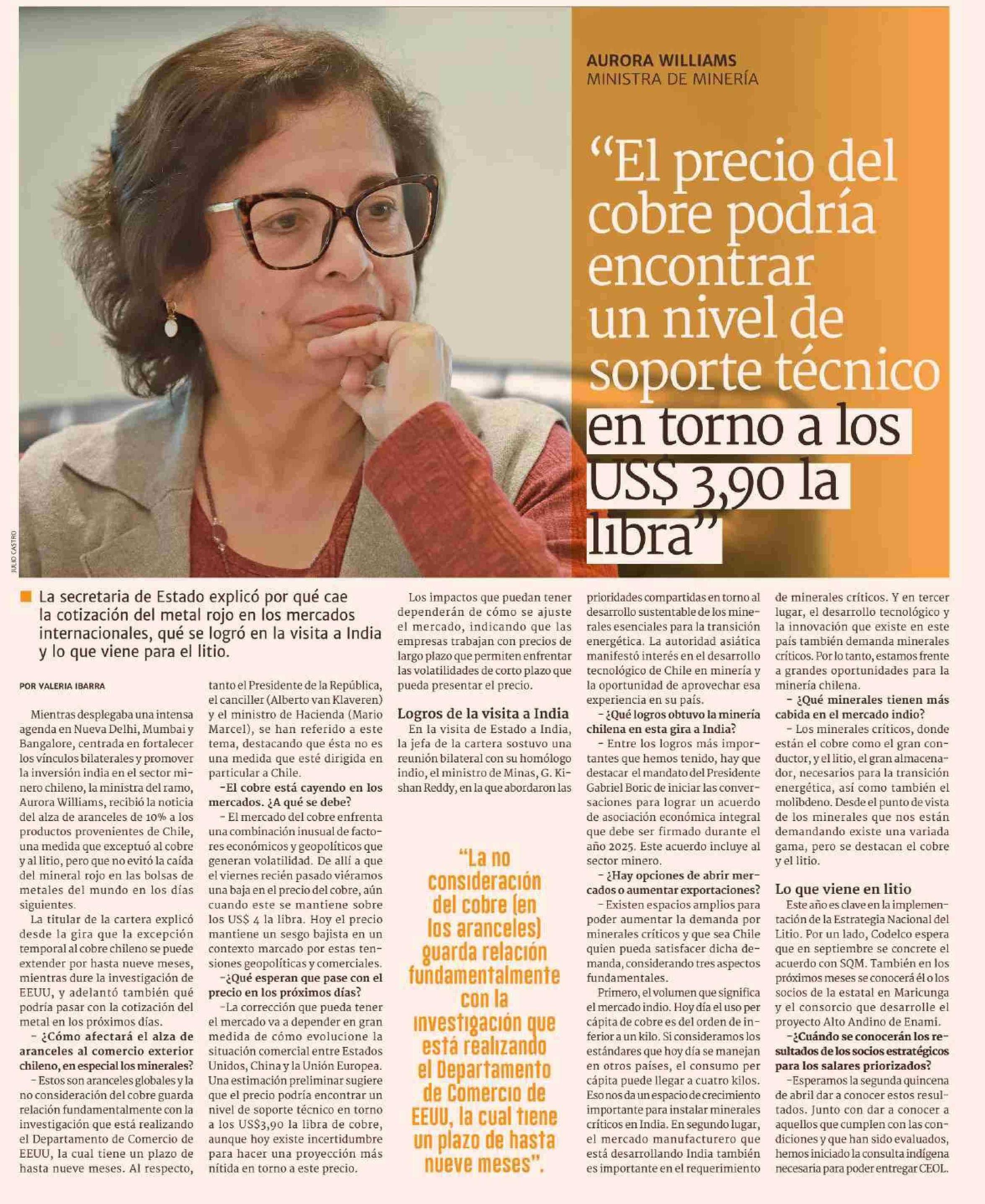 “El precio del cobre podria encontrar un nivel de soporte técnico en torno a los US$3,90 la libra"