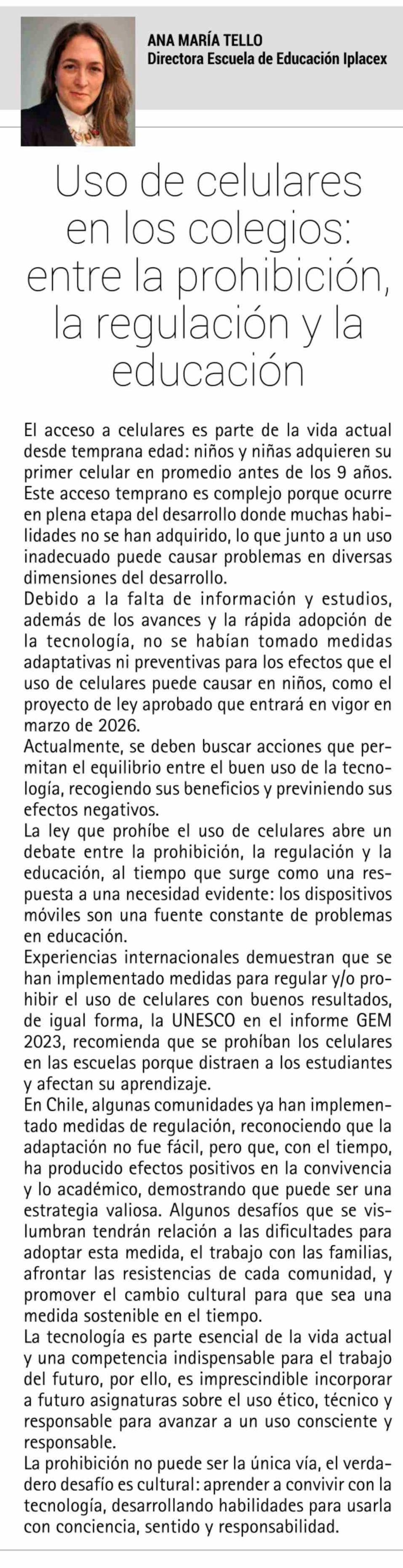 Columnas de Opinión: Uso de celulares en los colegios: entre la prohibición, la regulación y la educación