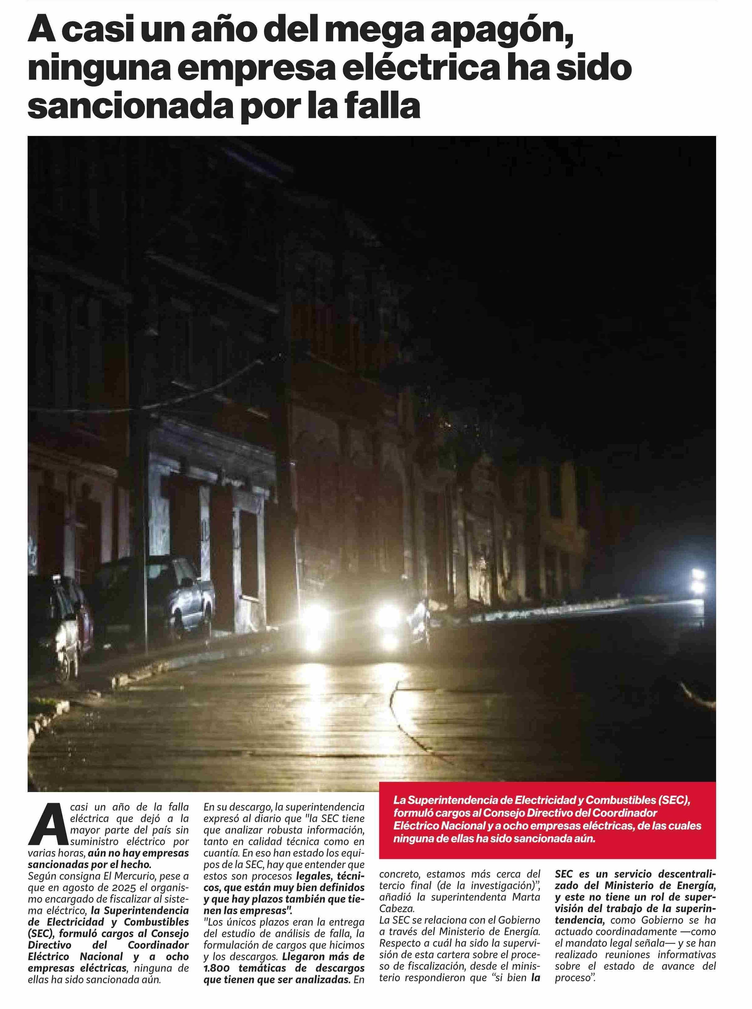 A casi un año del mega apagón, ninguna empresa eléctrica ha sido sancionada por la falla