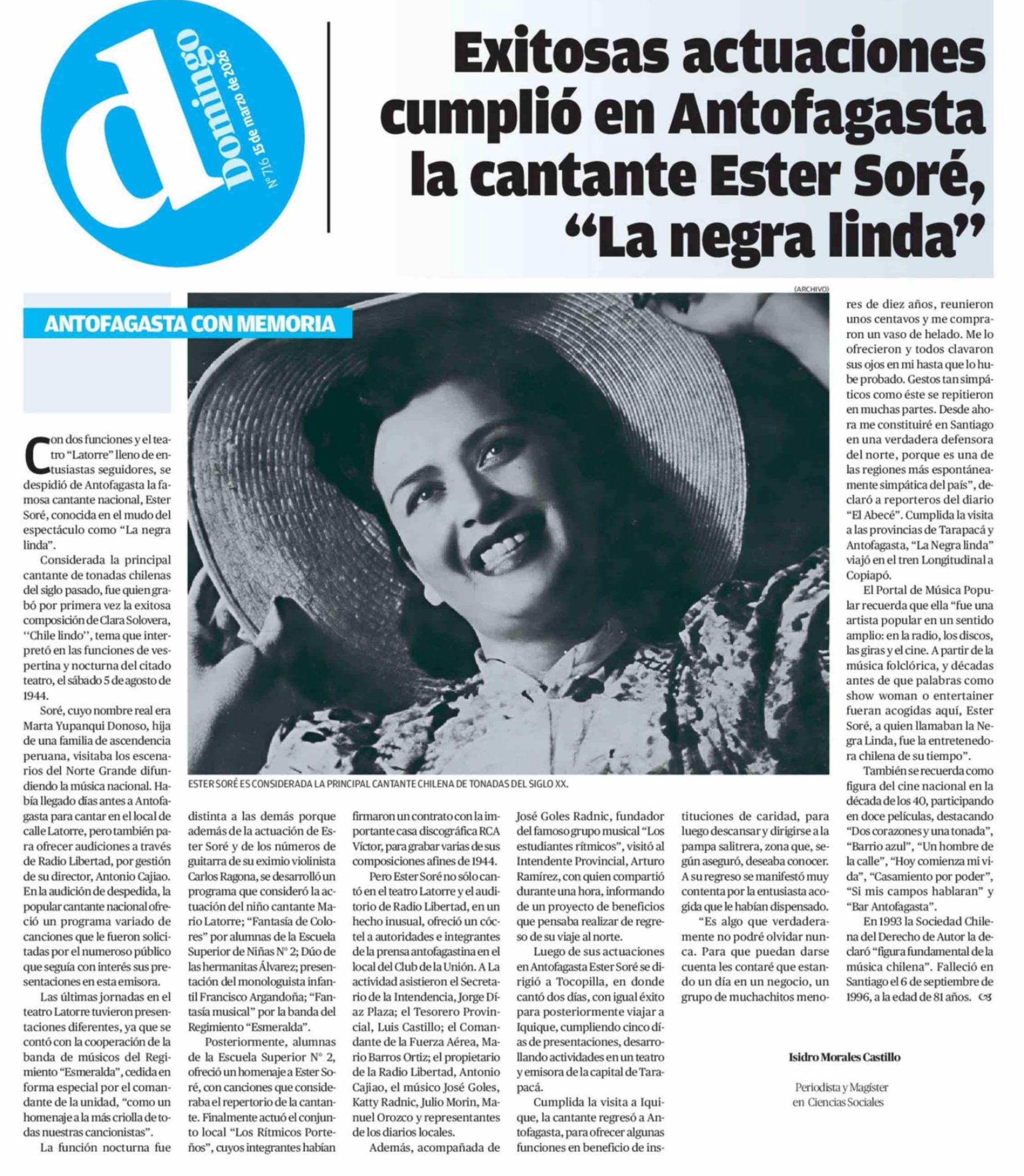Exitosas actuaciones cumplió en Antofagasta la cantante Ester Soré, “La negra linda”