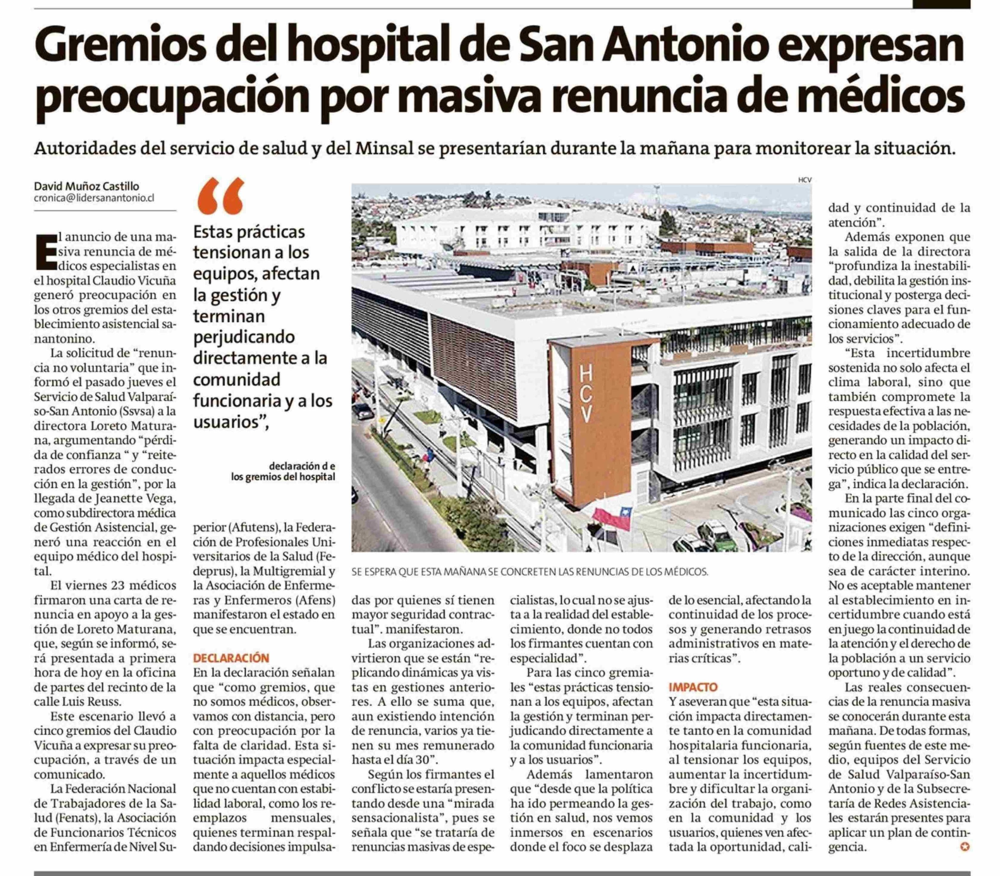 Gremios del hospital de San Antonio expresan preocupación por masiva renuncia de médicos