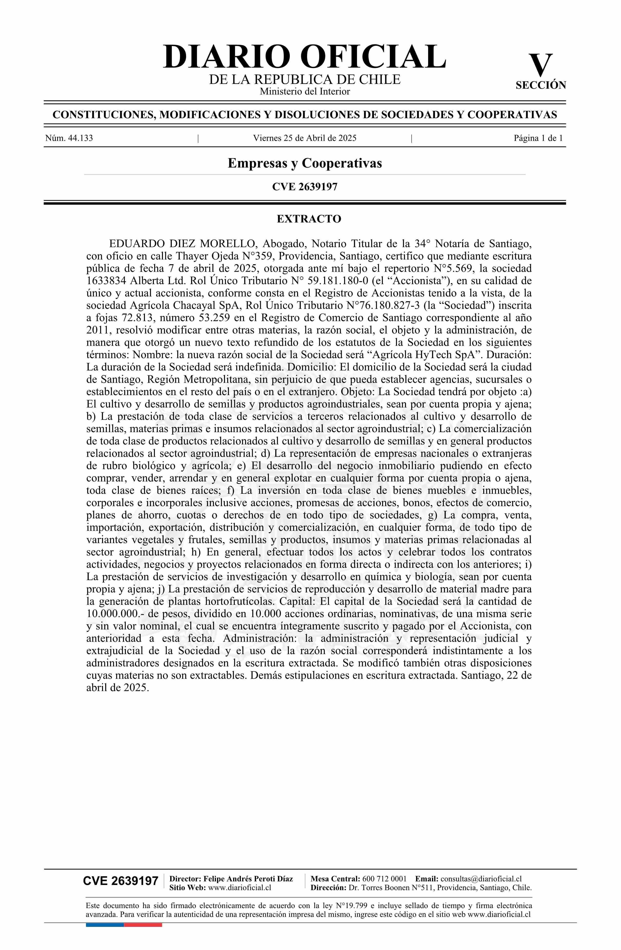 Diario Oficial Edición Electrónica (Diario Oficial de Chile - 5 Empresas Y Cooper)