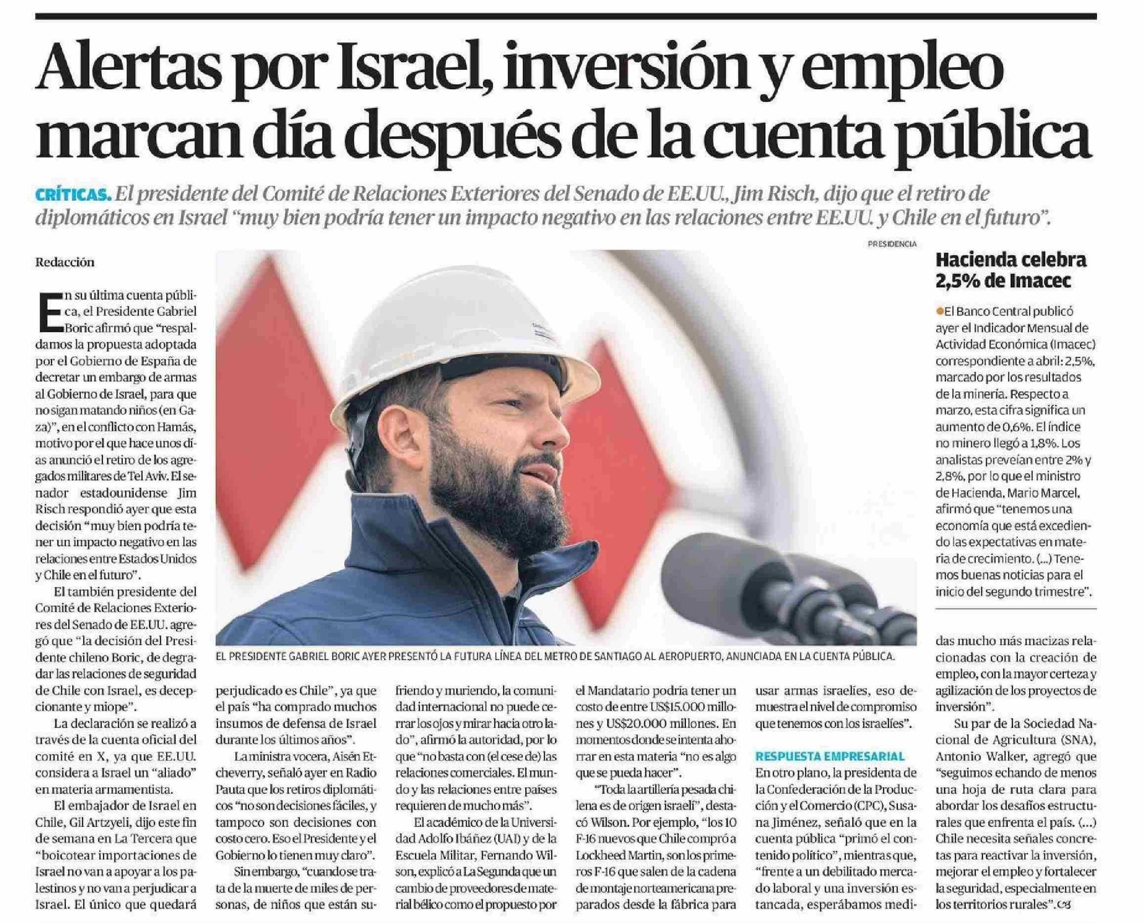 Alertas por Israel, inversión y empleo marcan día después de la cuenta pública