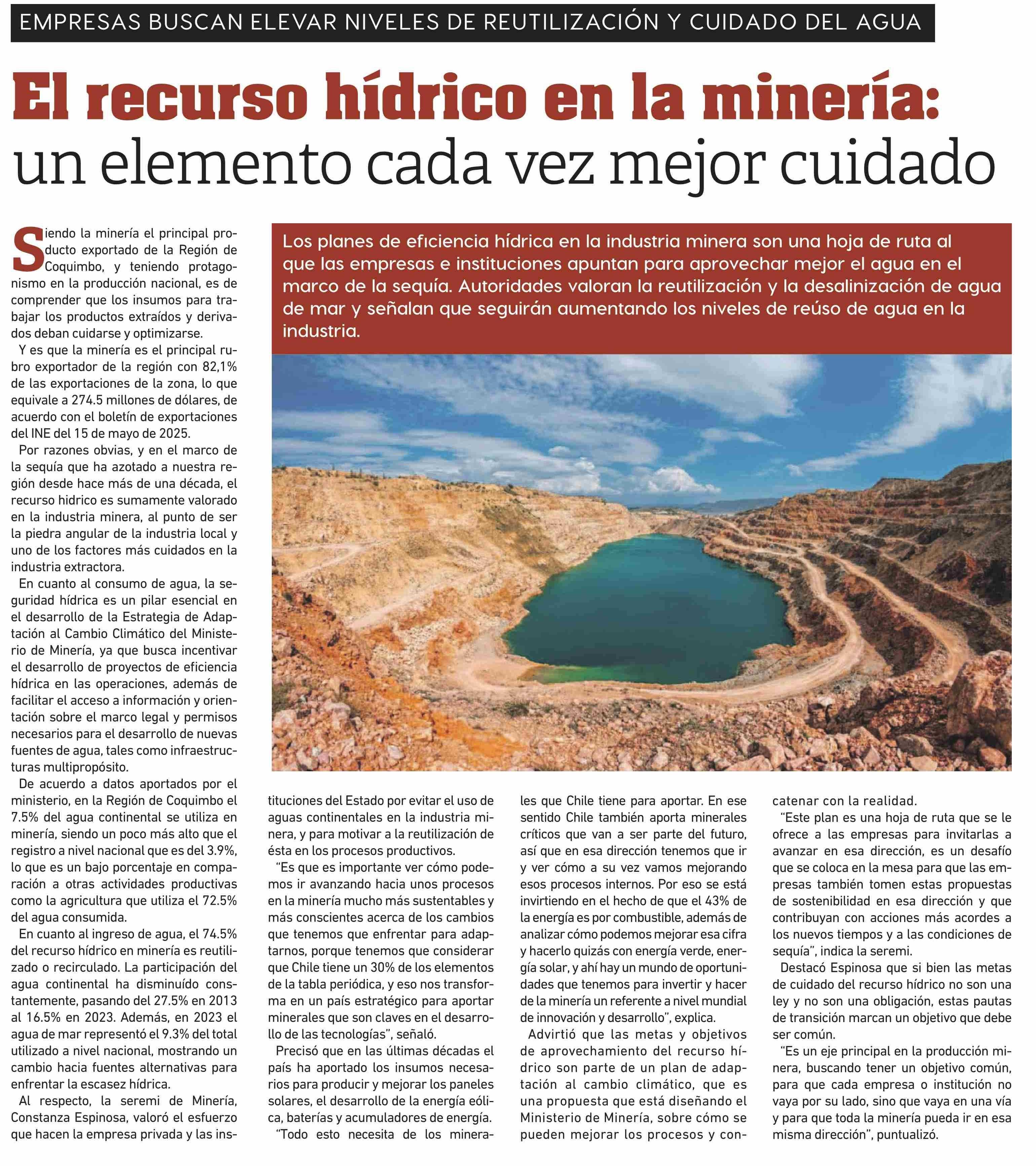 El recurso hídrico en la minería: un elemento cada vez mejor cuidado
