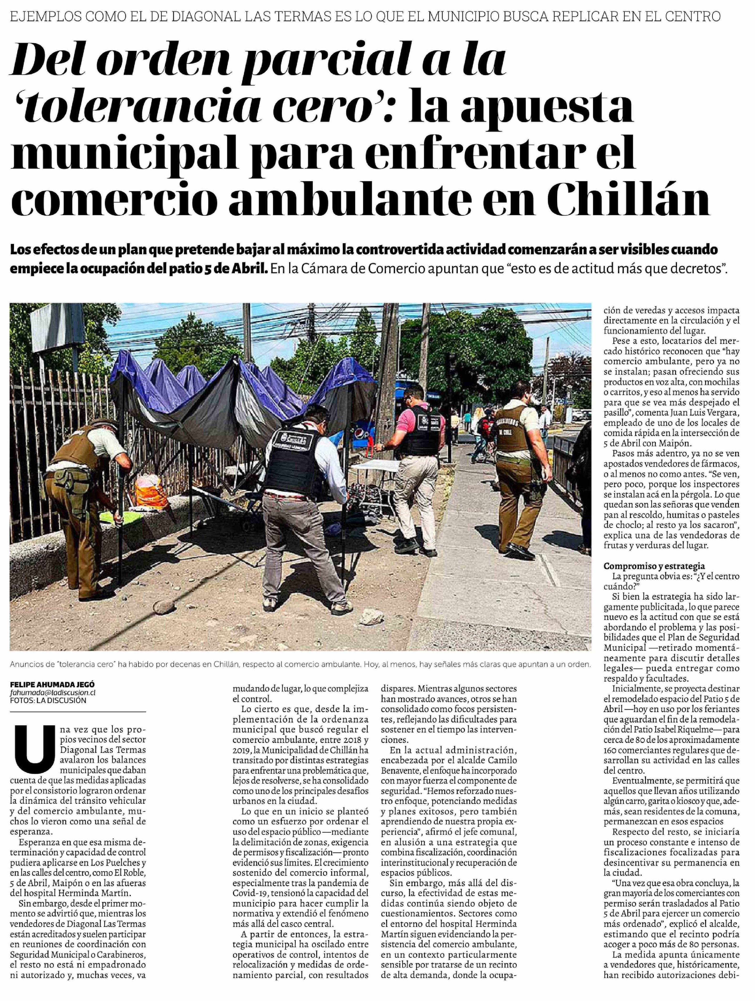Del orden parcial a la 'tolerancia cero': la apuesta municipal para enfrentar el comercio ambulante en Chillán