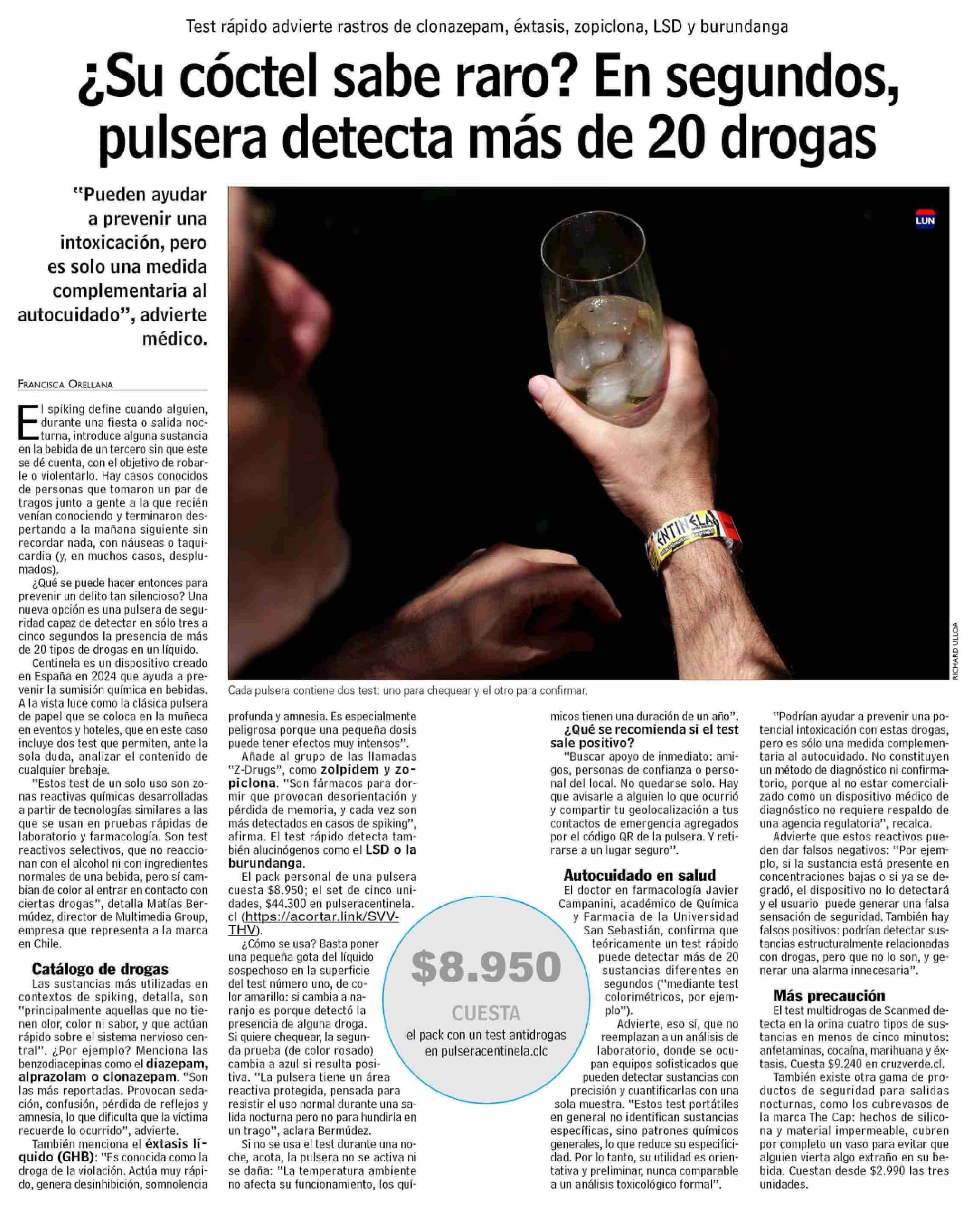 Título: ¿Su cóctel sabe raro? En segundos, pulsera detecta más de 20 drogas