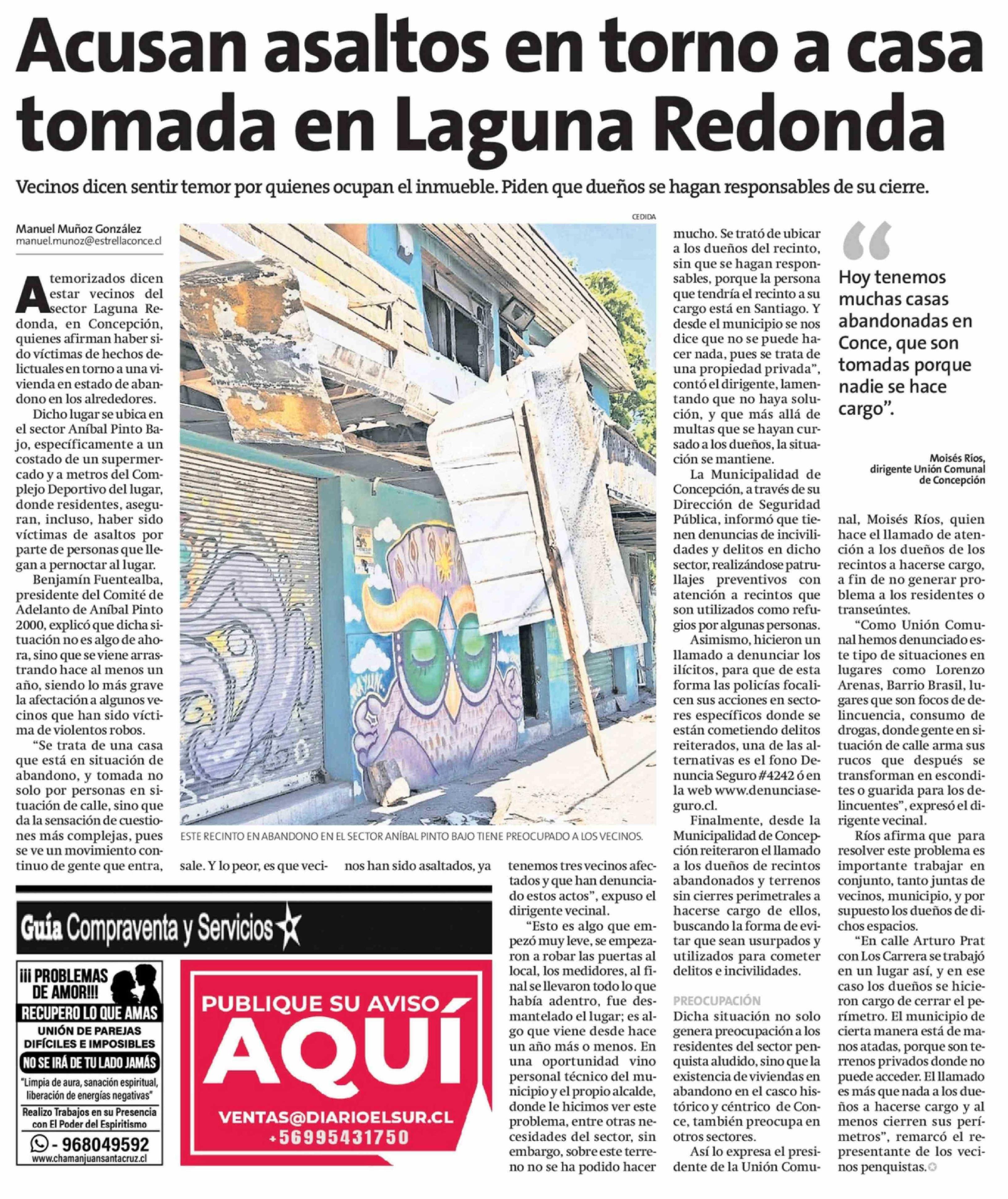 Acusan asaltos en torno a casa tomada en Laguna Redonda