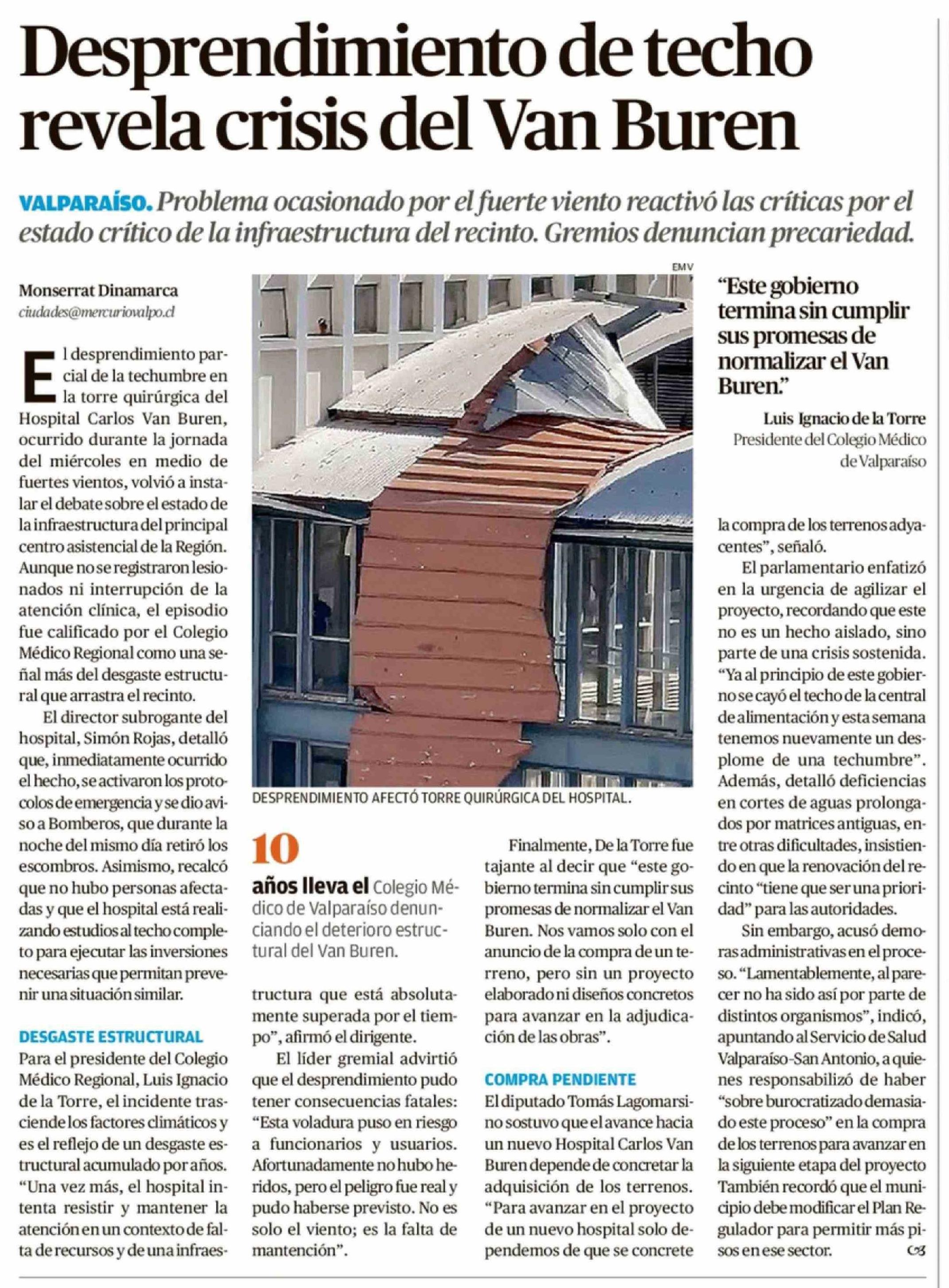 Desprendimiento de techo revela crisis del Van Buren