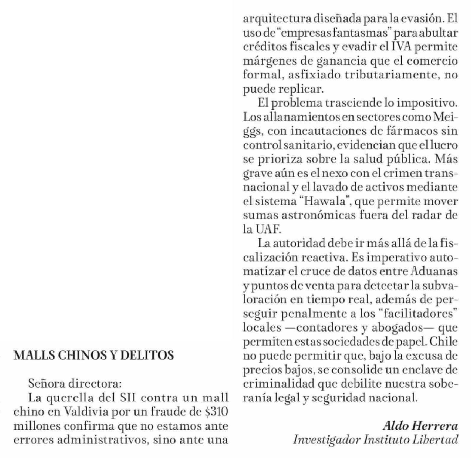 Cartas: MALLS CHINOS Y DELITOS