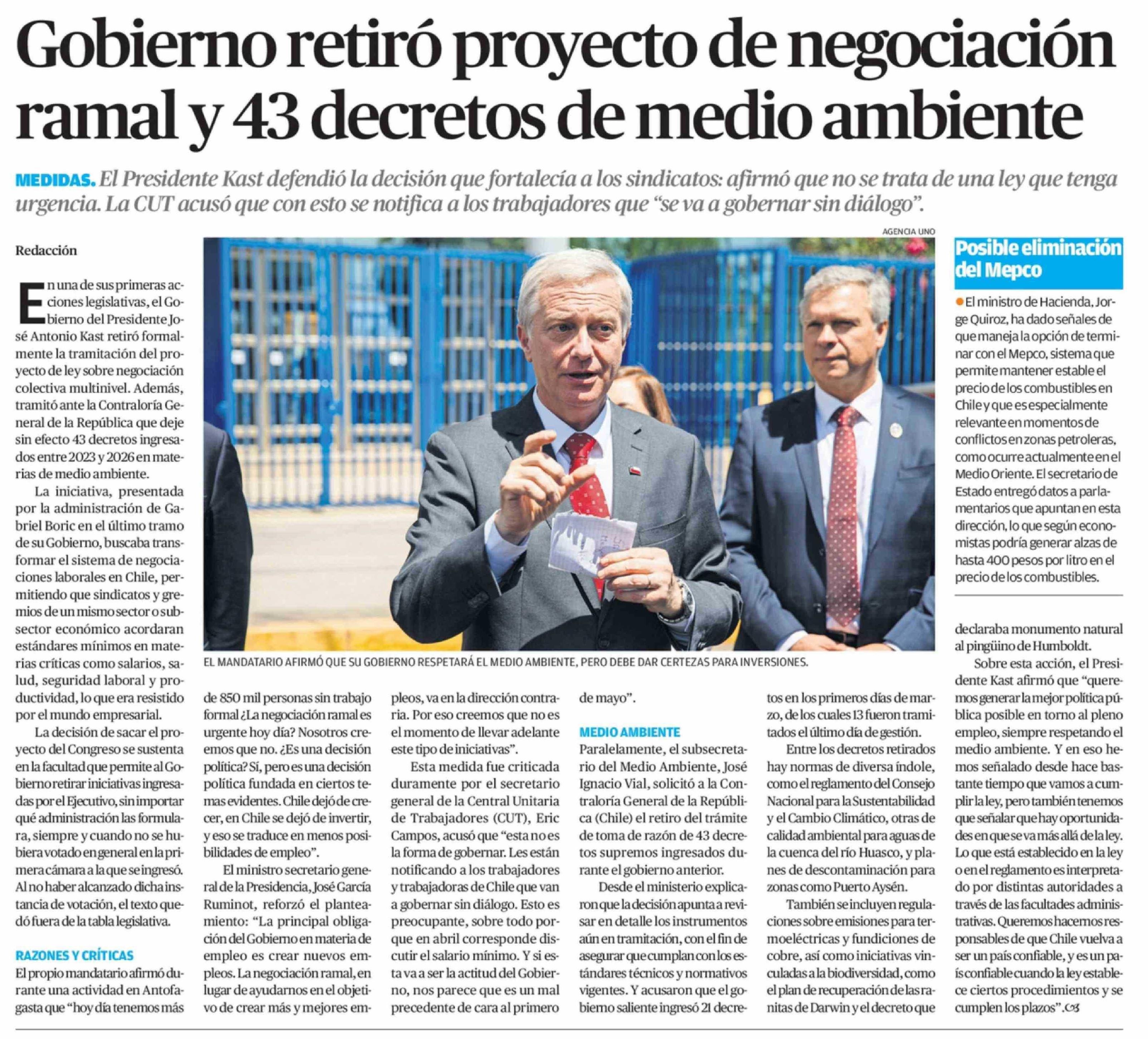 Gobierno retiró proyecto de negociación ramal y 43 decretos de medio ambiente