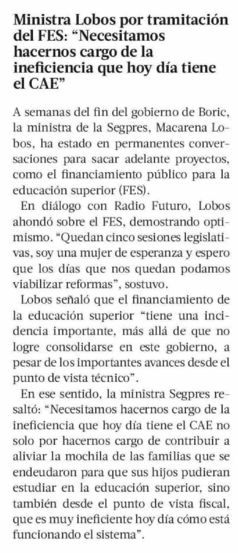 Ministra Lobos por tramitación del FES: "Necesitamos hacernos cargo de la ineficiencia que hoy día tiene el CAE"