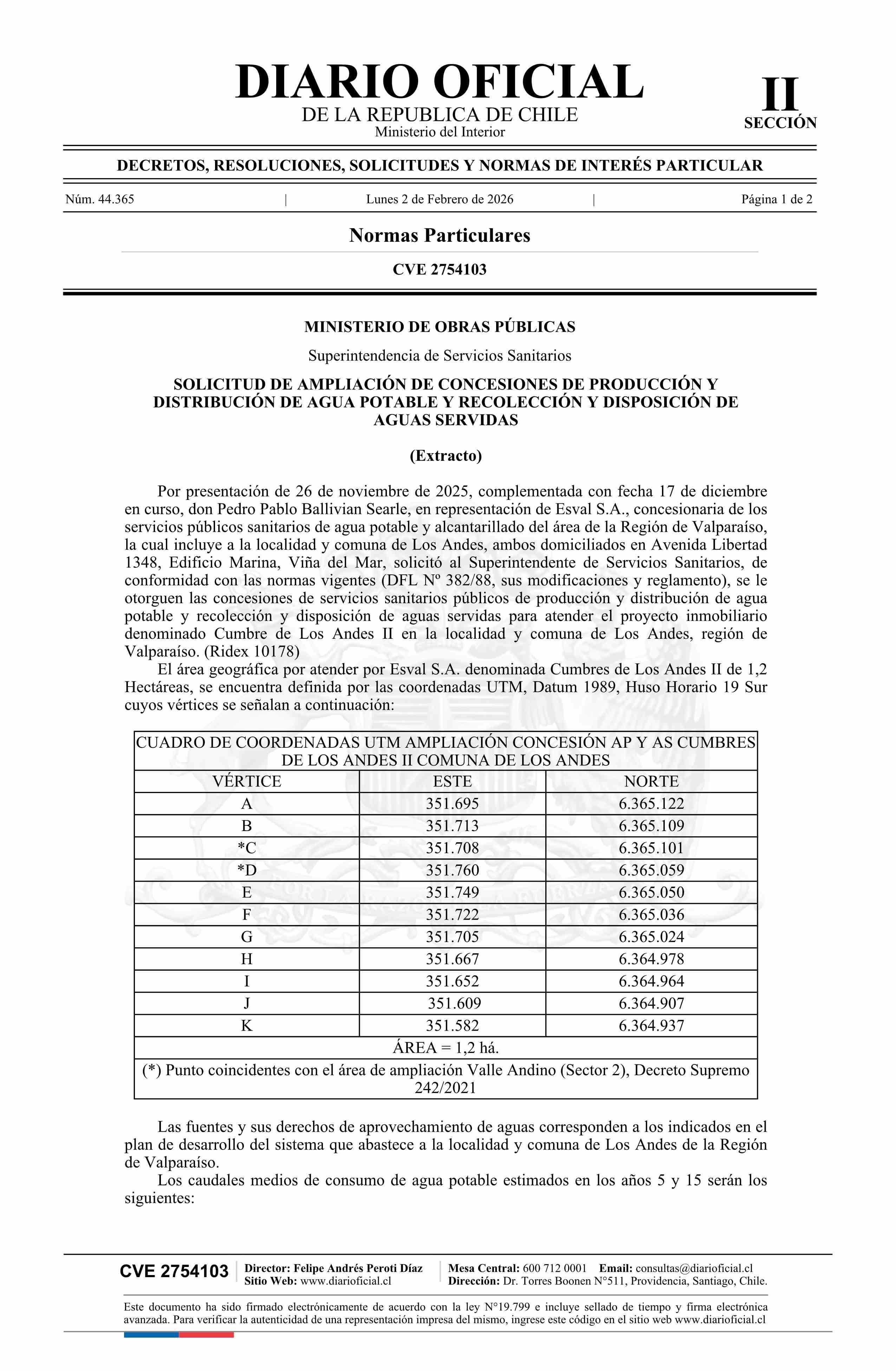 | Título: | Solicitud de ampliación de concesiones de producción y distribución de agua potable y recolección y disposición de aguas servidas |