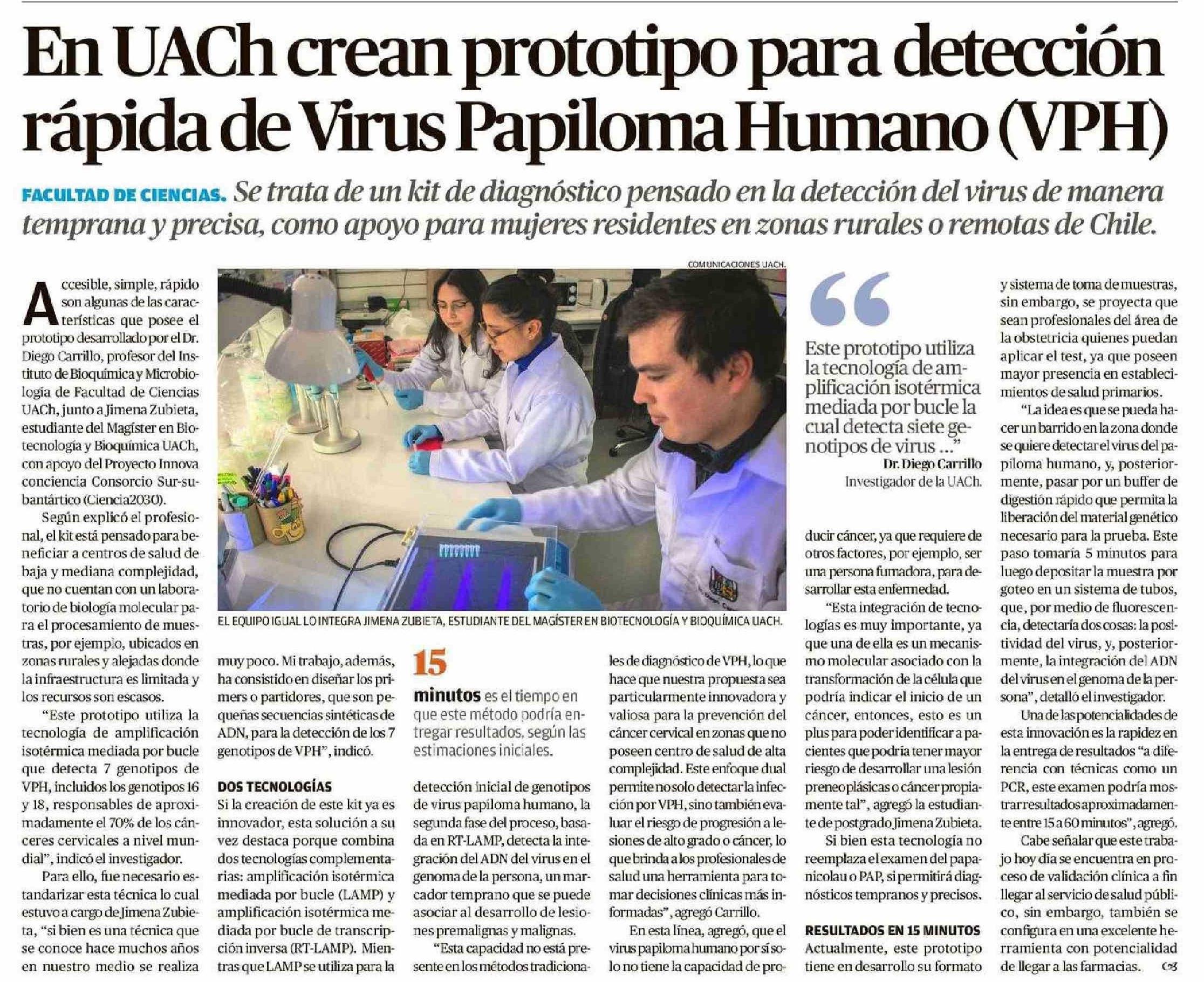 En UACh crean prototipo para detección rápida de Virus Papiloma Humano (VPH)