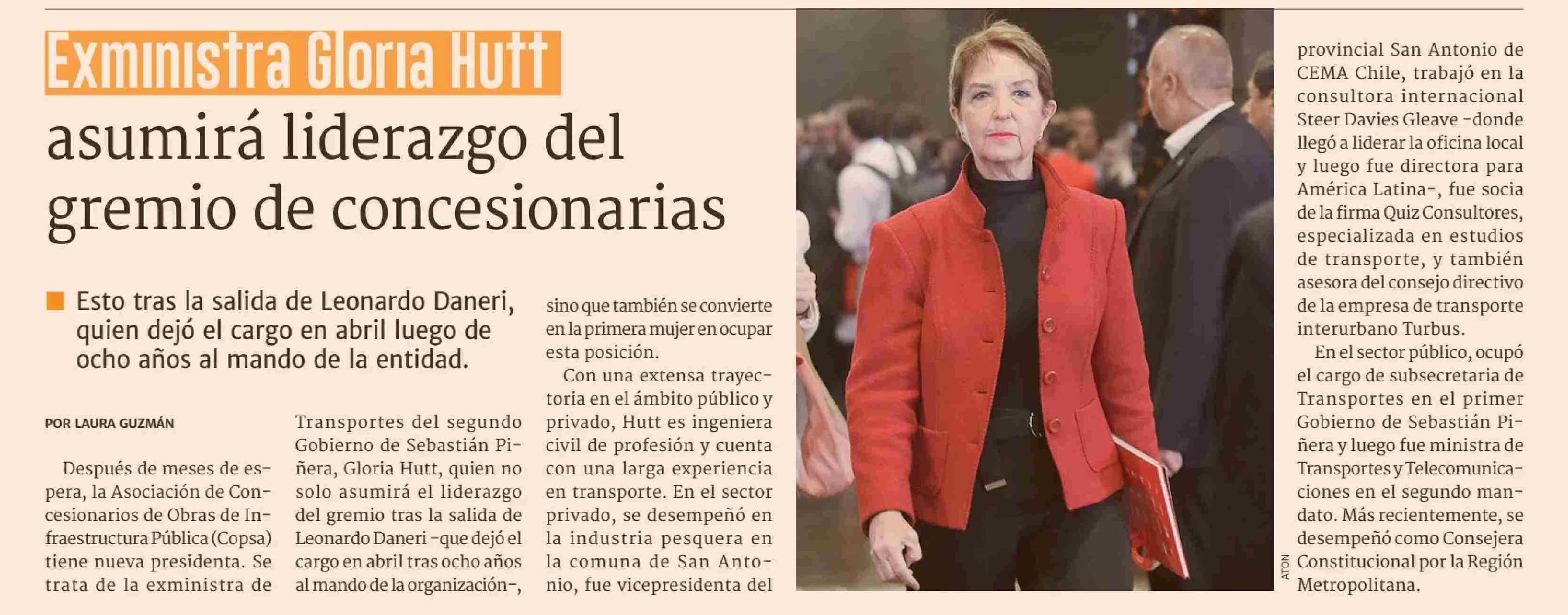 Exministra Gloria Hutt asumirá liderazgo del gremio de concesionarias