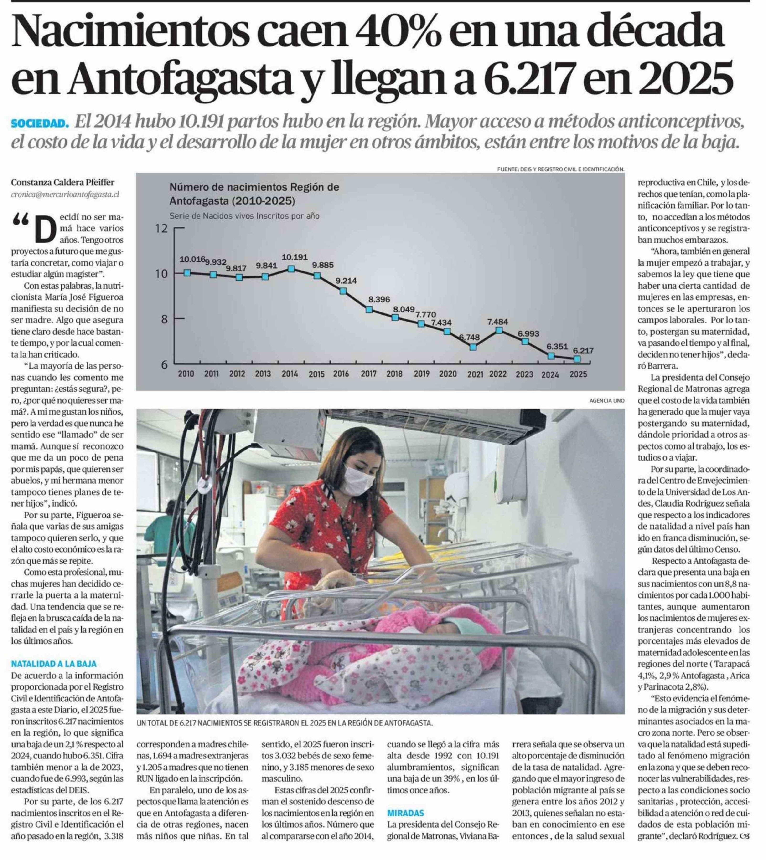 Nacimientos caen 40% en una década en Antofagasta y llegan a 6.217 en 2025