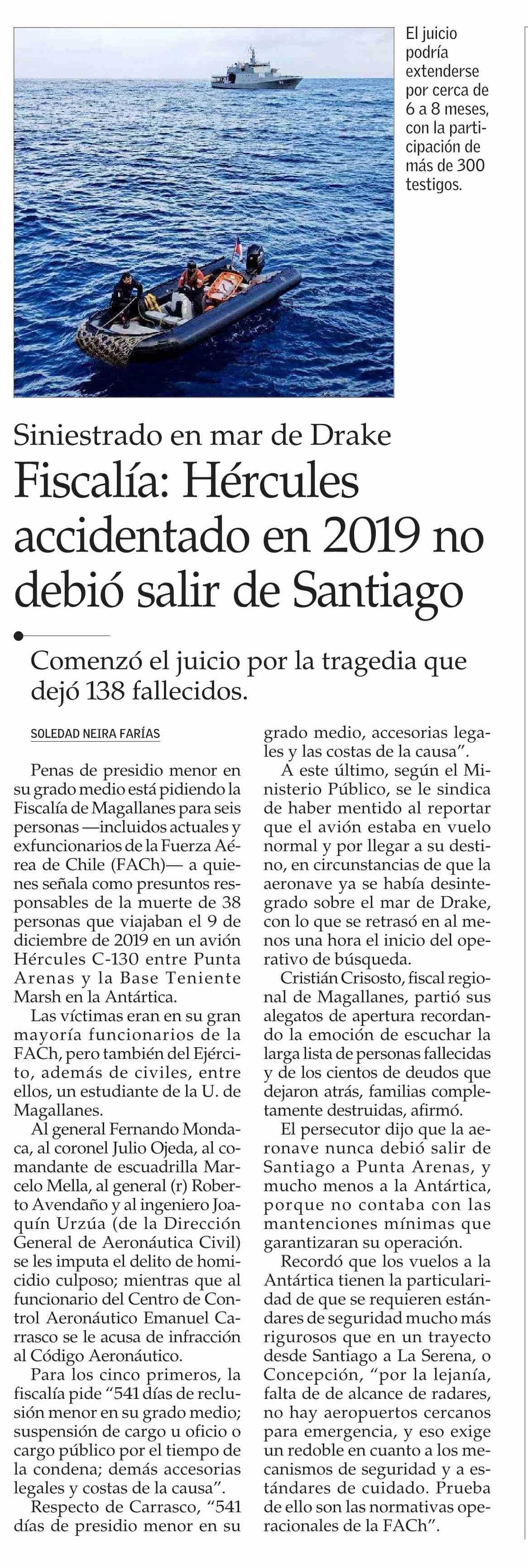 Fiscalía: Hércules accidentado en 2019 no debió salir de Santiago