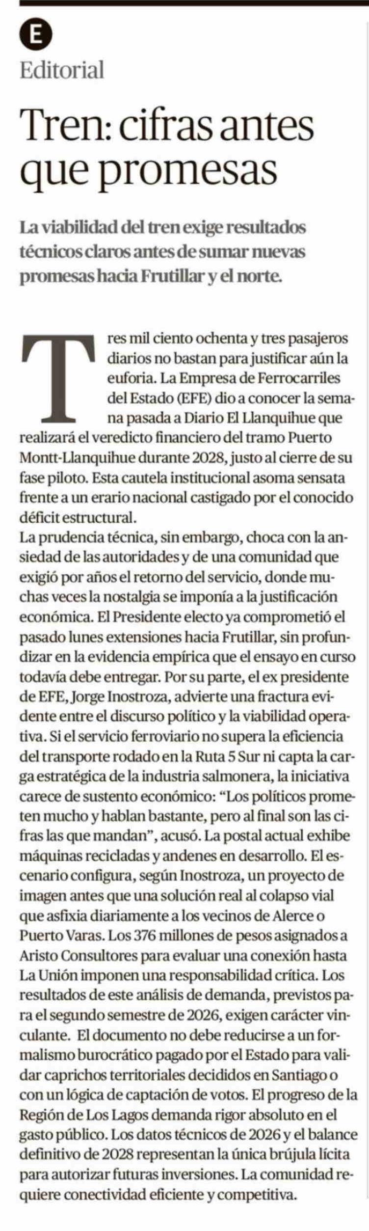 Editorial: Tren: cifras antes que promesas