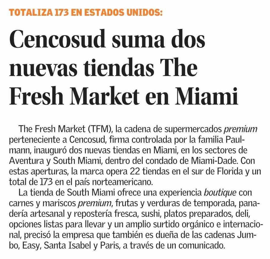 Cencosud suma dos nuevas tiendas The Fresh Market en Miami