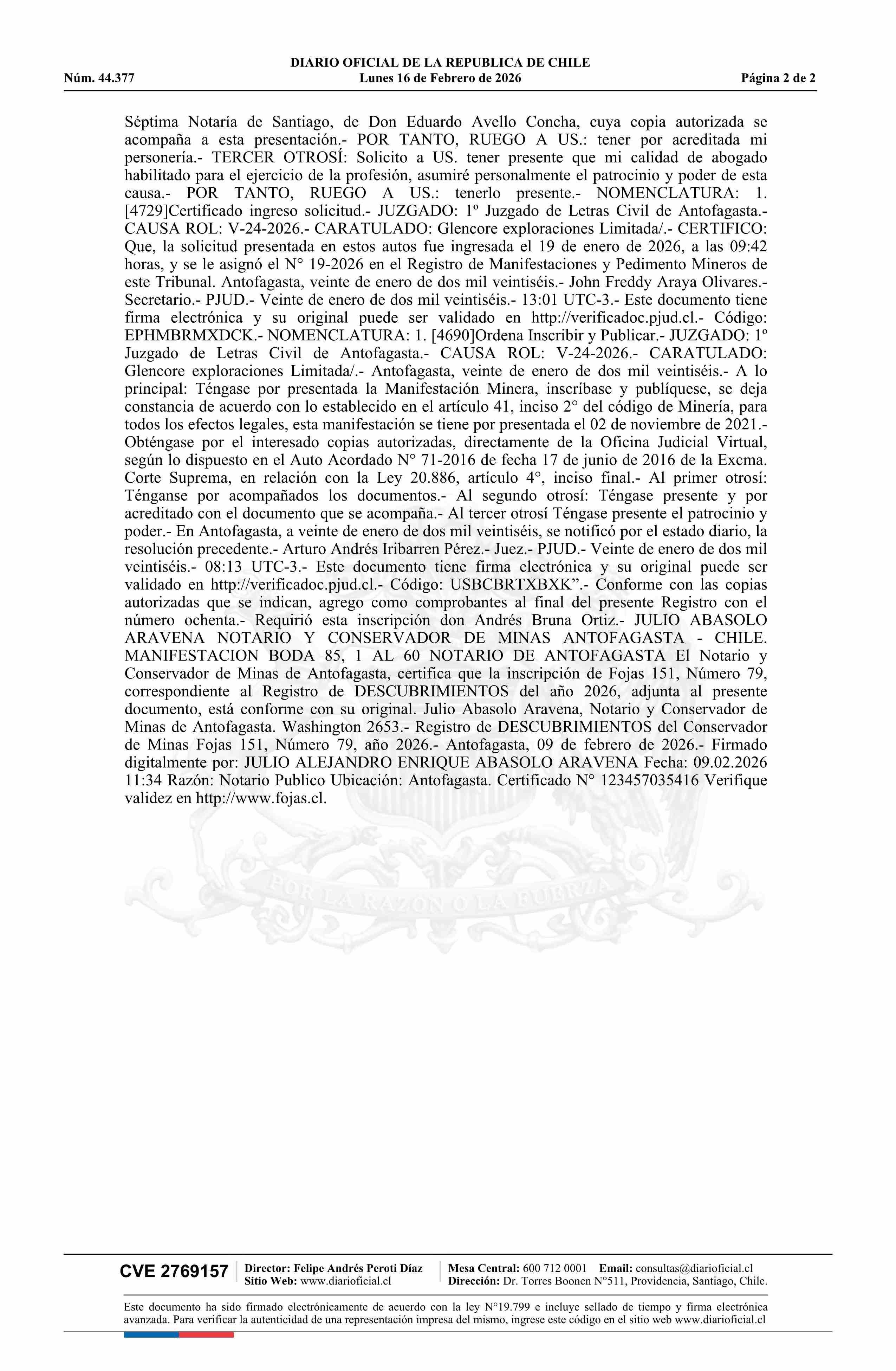 DIARIO OFICIAL CHILE - BOLETÍN OFICIAL DE MINERÍA (DIARIO OFICIAL CHILE – BOM – MANIFESTACIONES MIN)