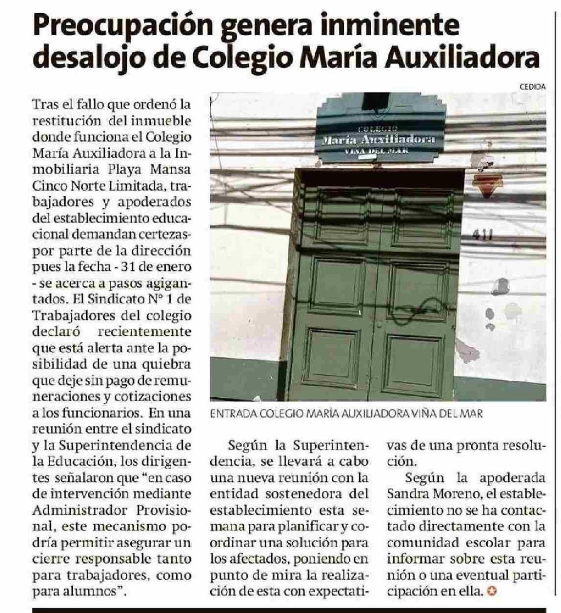 Preocupación genera inminente desalojo de Colegio María Auxiliadora