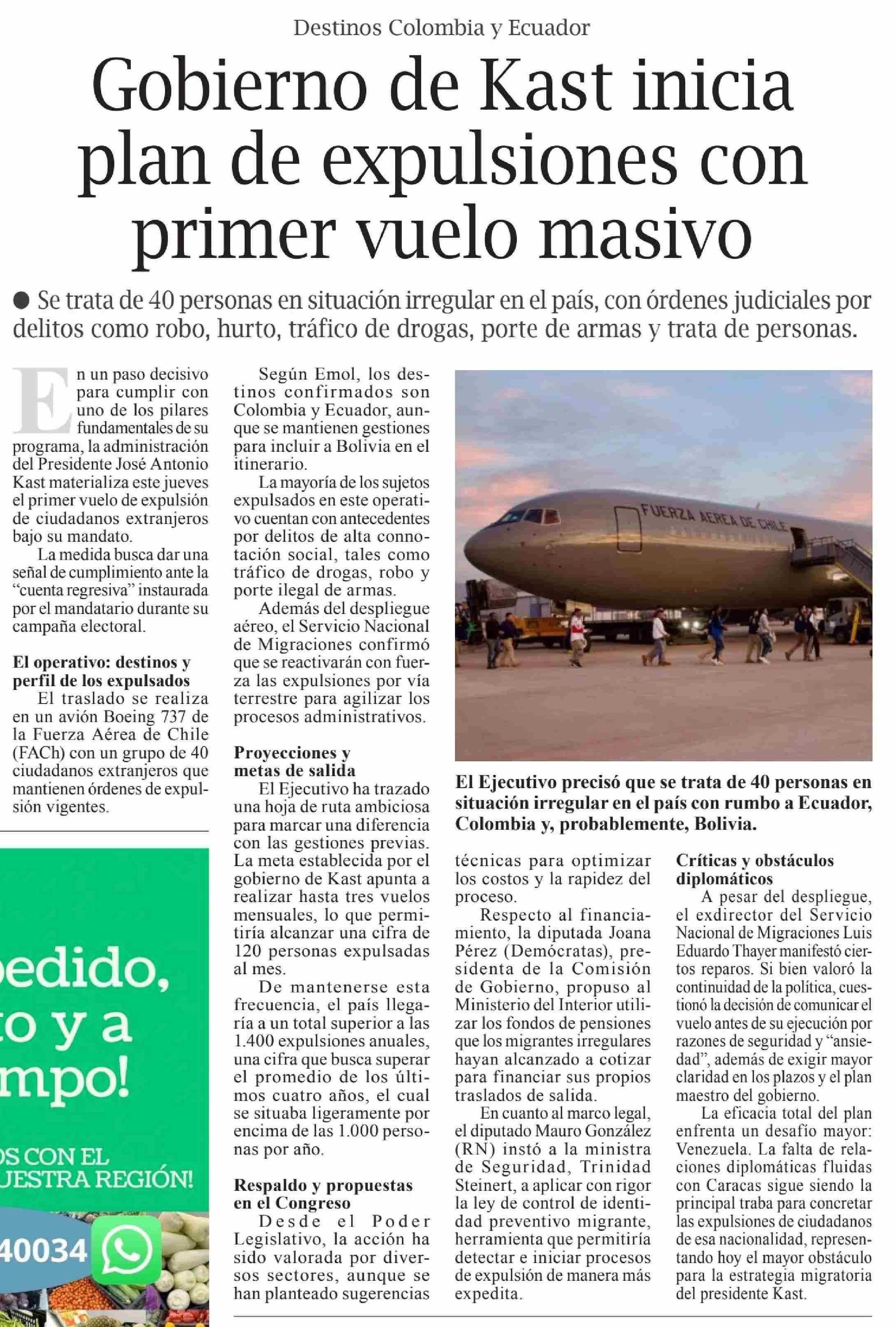 Gobierno de Kast inicia plan de expulsiones con primer vuelo masivo