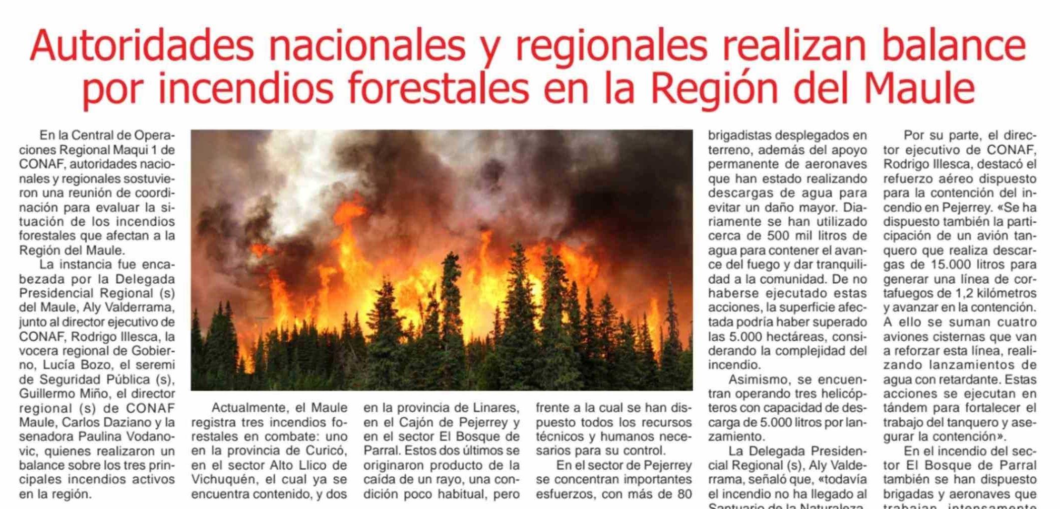 Título: Autoridades nacionales y regionales realizan balance por incendios forestales en la Región del Maule