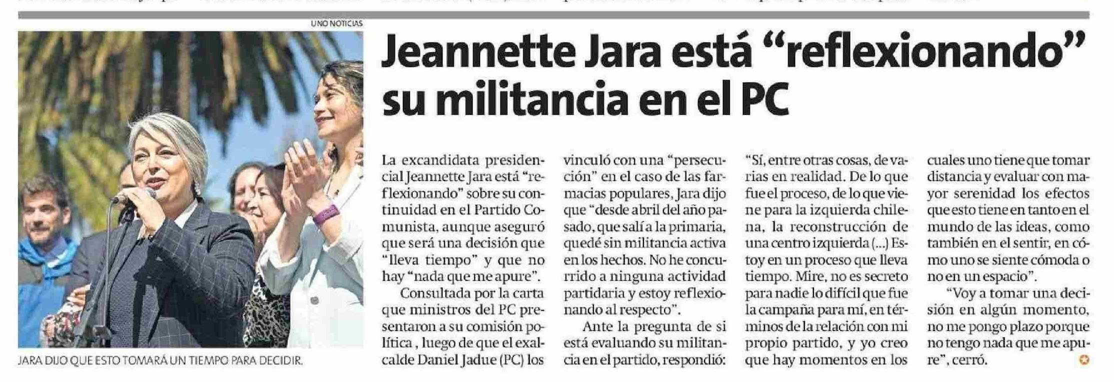 Jeannette Jara está "reflexionando" su militancia en el PC