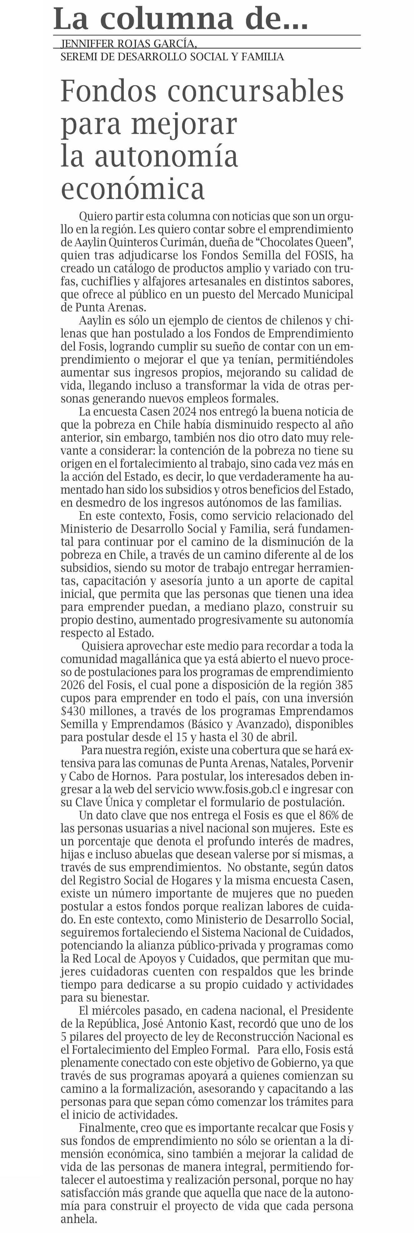COLUMNAS DE OPINIÓN: Fondos concursables para mejorar la autonomía económica
