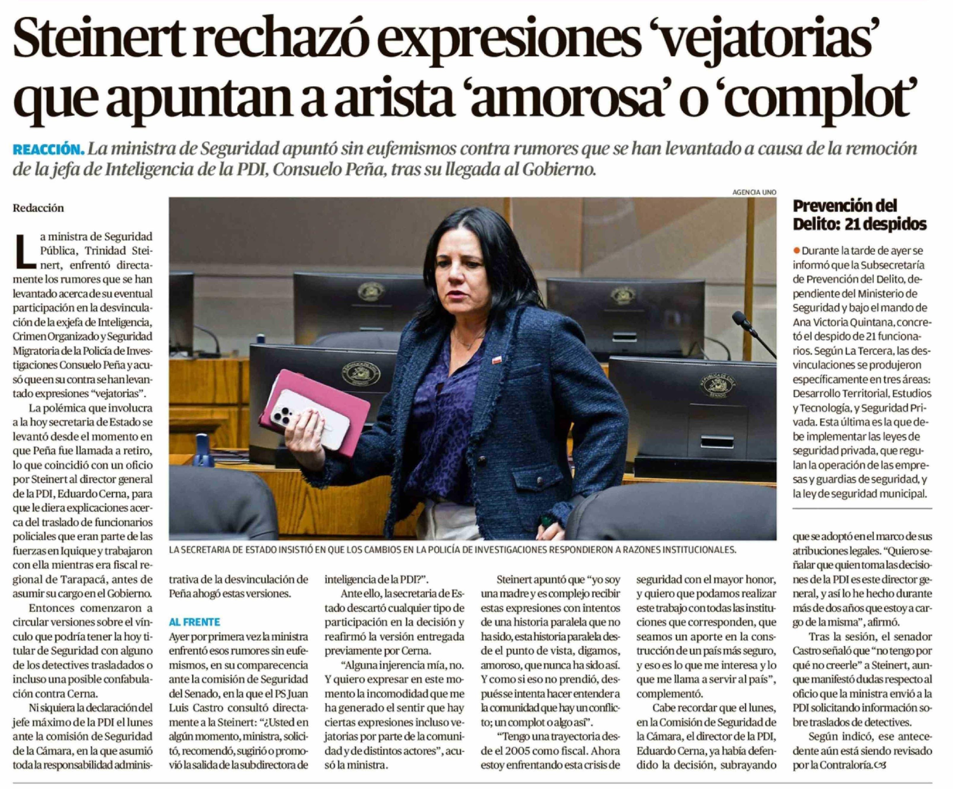 Steinert rechazó expresiones 'vejatorias' que apuntan a arista 'amorosa' o 'complot'