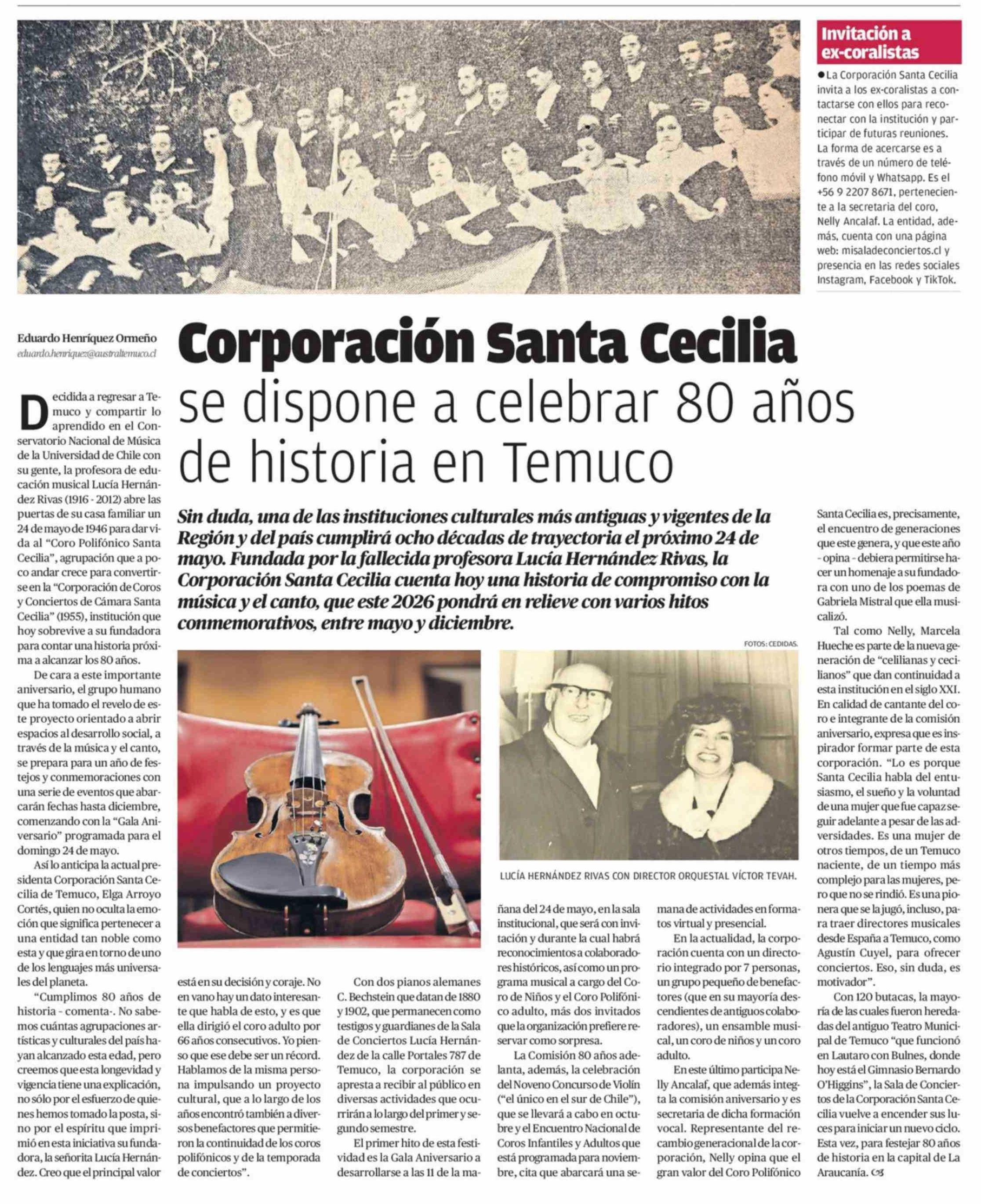 Corporación Santa Cecilia se dispone a celebrar 80 años de historia en Temuco