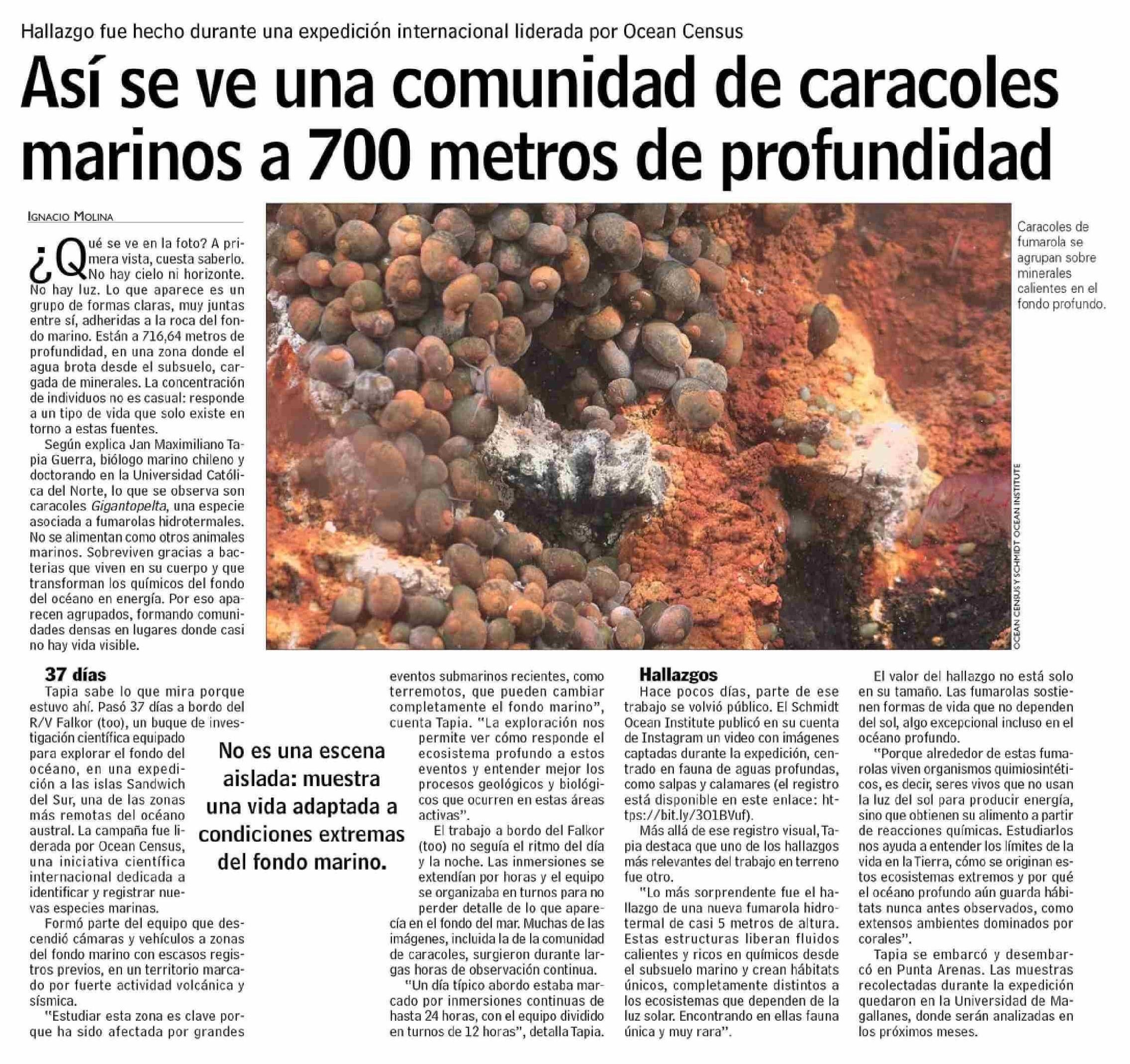 Así se ve una comunidad de caracoles marinos a 700 metros de profundidad