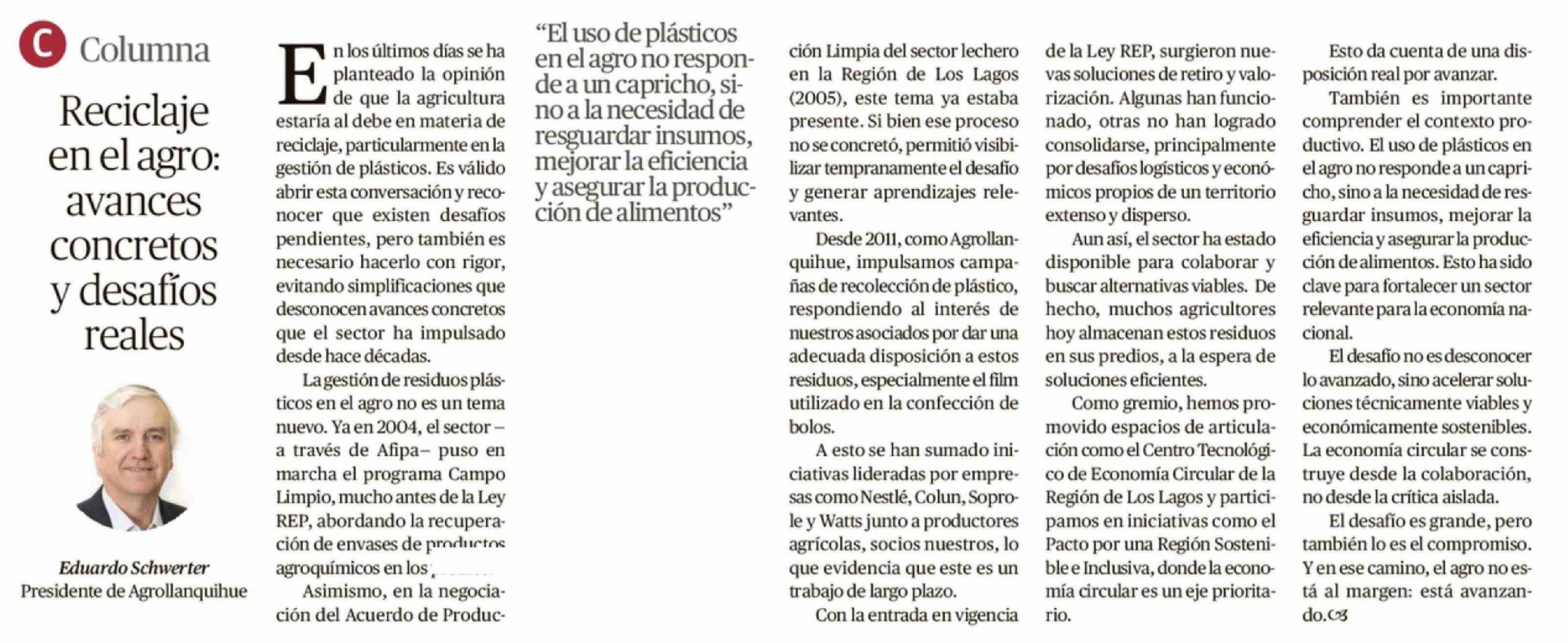 Título: Columnas de Opinión: Reciclaje en el agro: avances concretos y desafíos reales