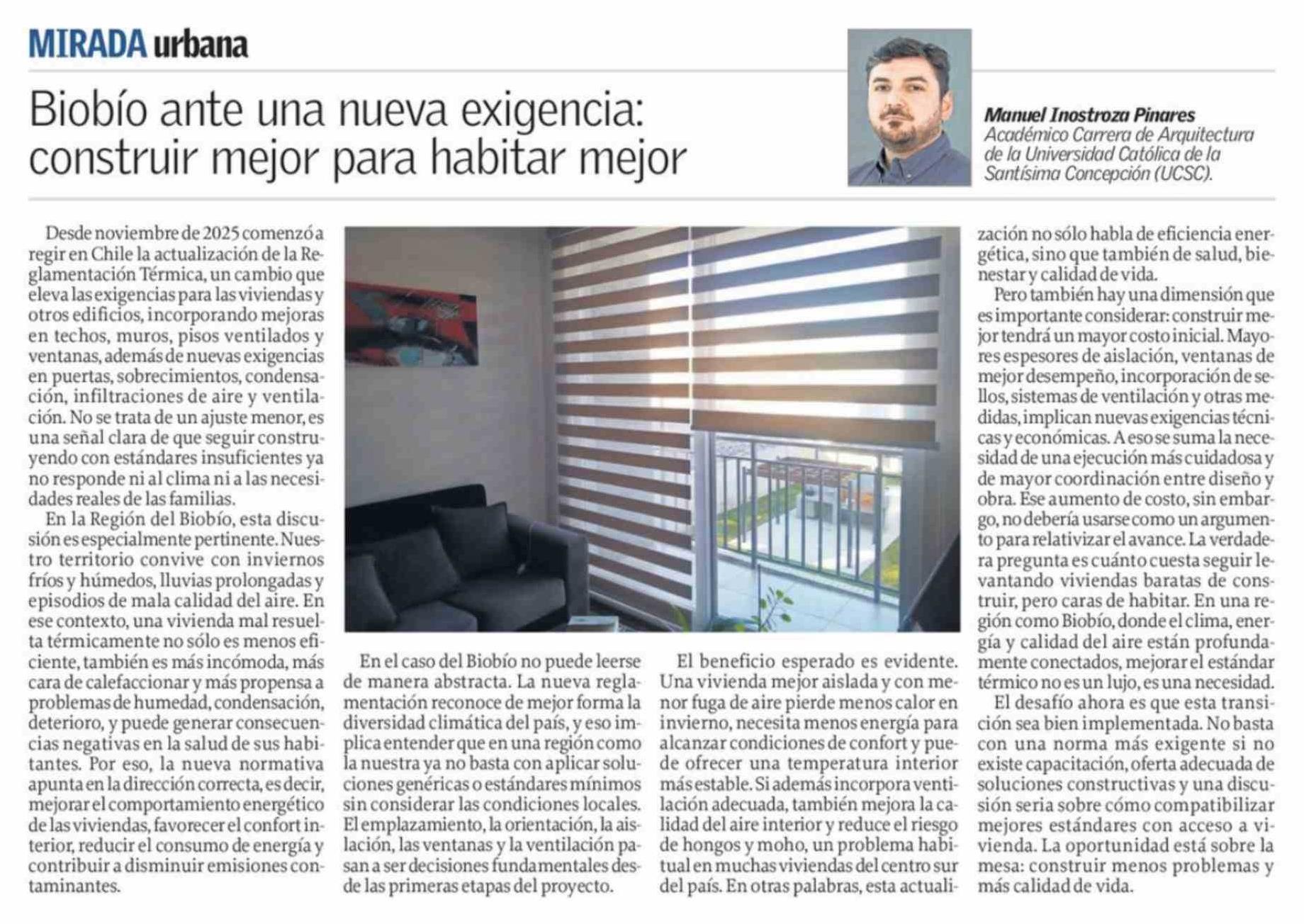 Columnas de Opinión: Biobío ante una nueva exigencia: construir mejor para habitar mejor