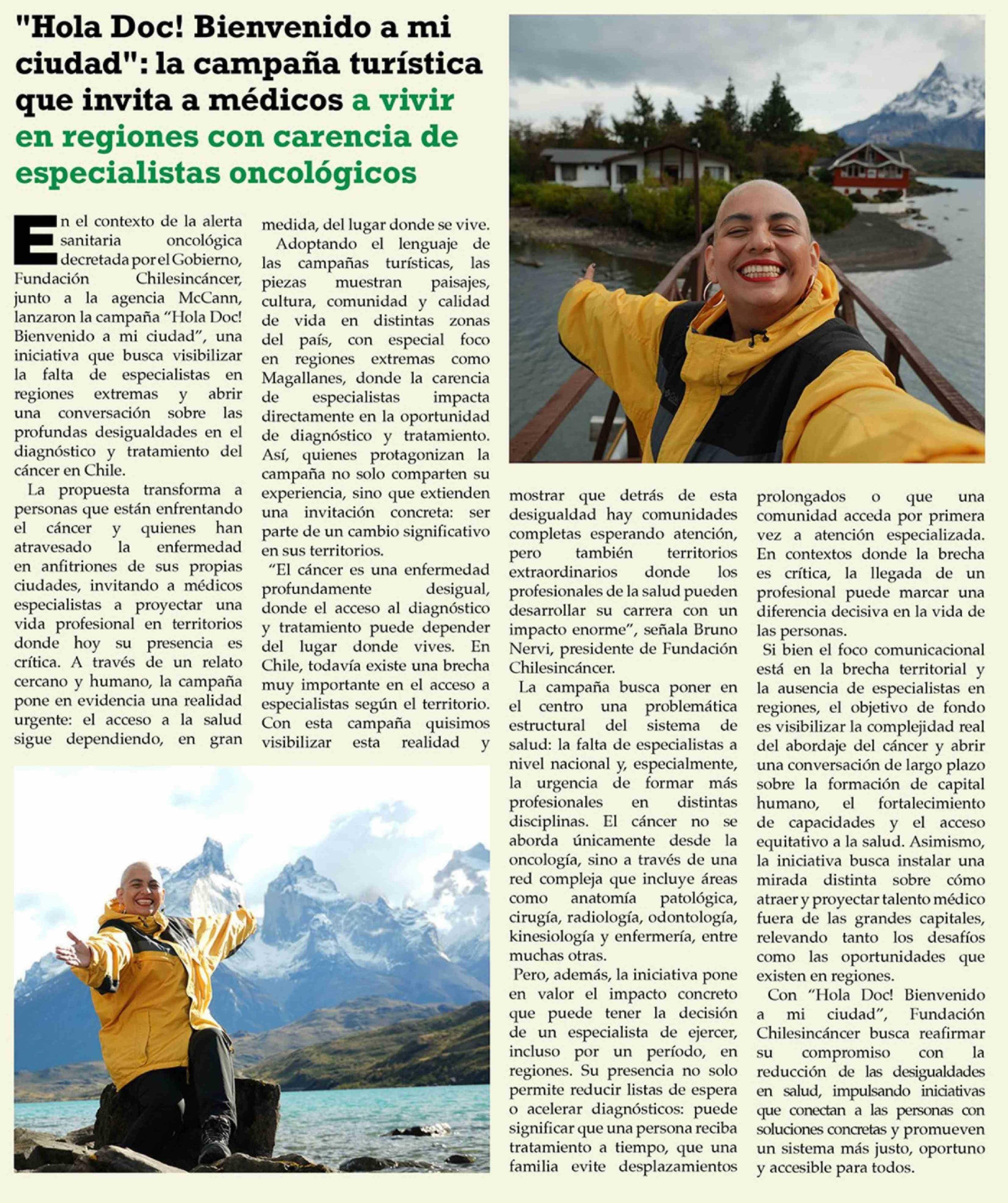 "Hola Doc! Bienvenido a mi ciudad": la campaña turística que invita a médicos a vivir en regiones con carencia de especialistas oncológicos