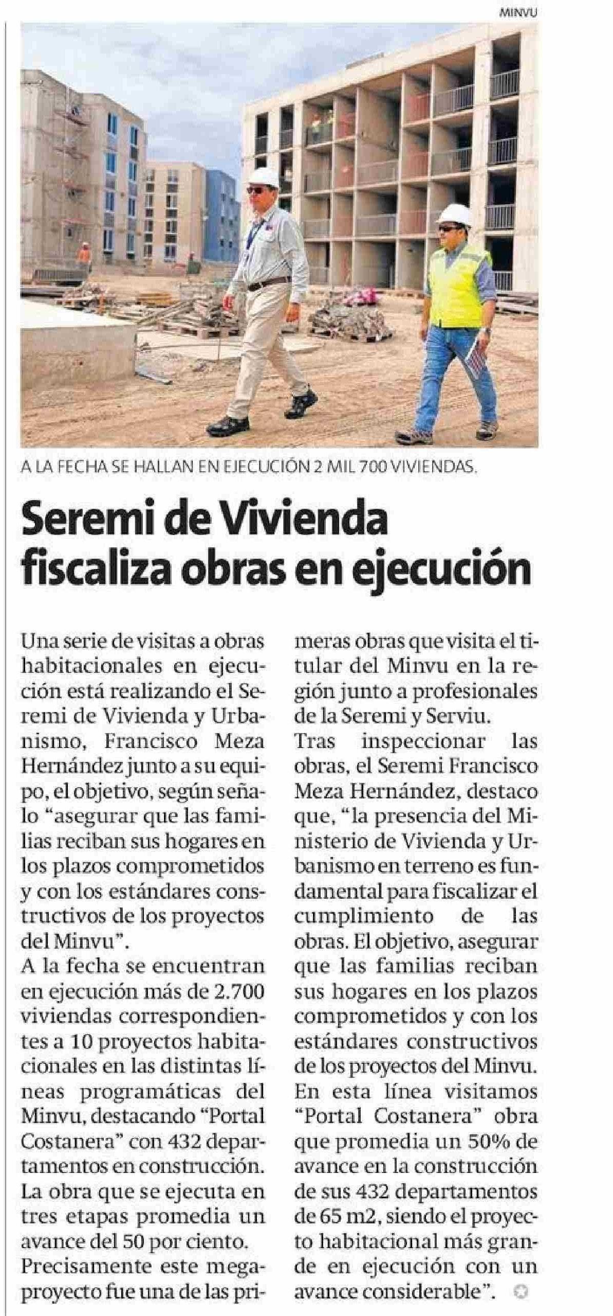Seremi de Vivienda fiscaliza obras en ejecución