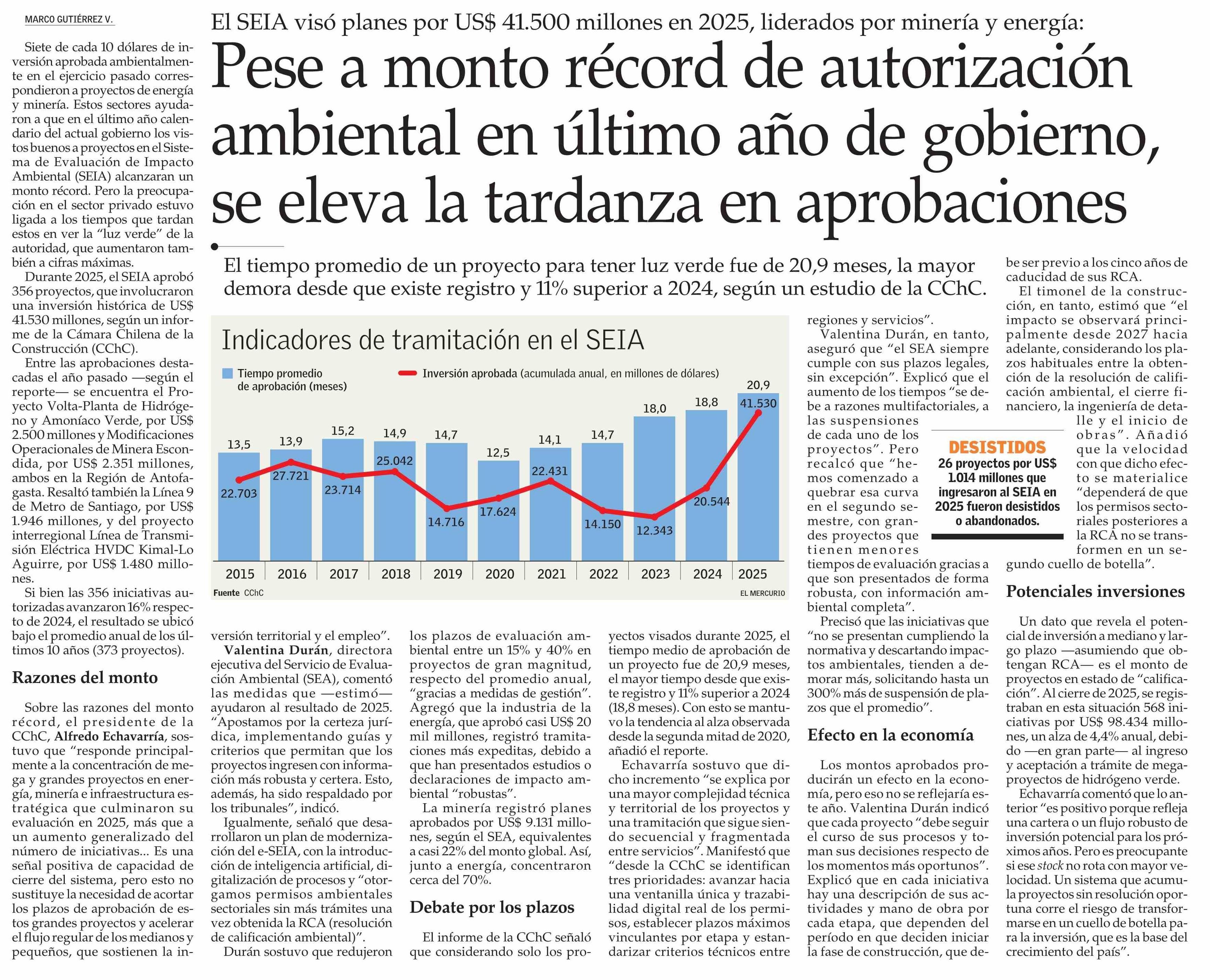 Pese a monto récord de autorización ambiental en último año de gobierno, se eleva la tardanza en aprobaciones