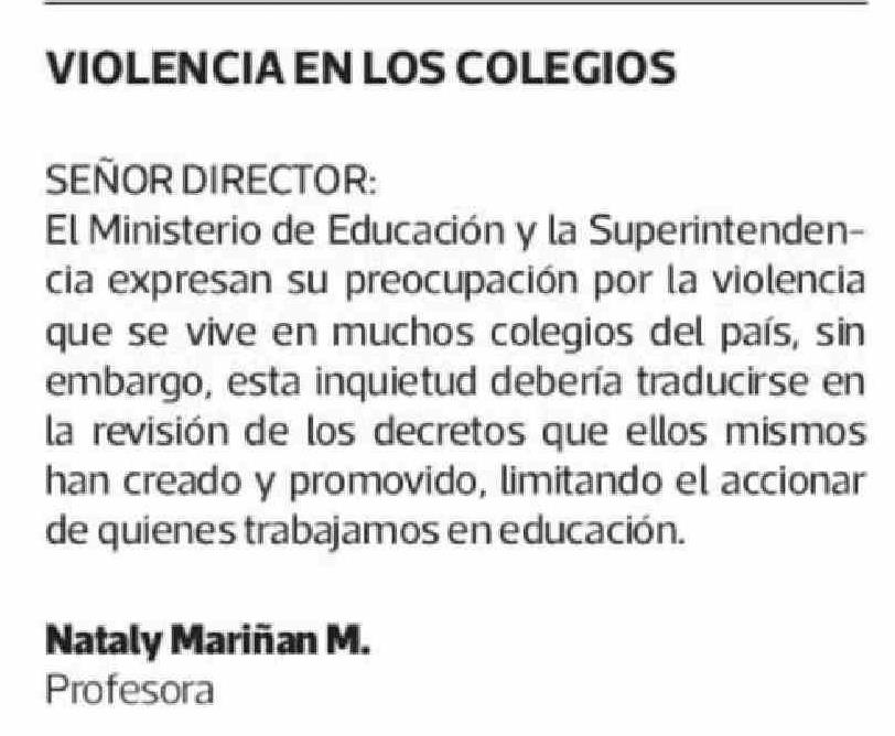 Cartas: VIOLENCIA EN LOS COLEGIOS