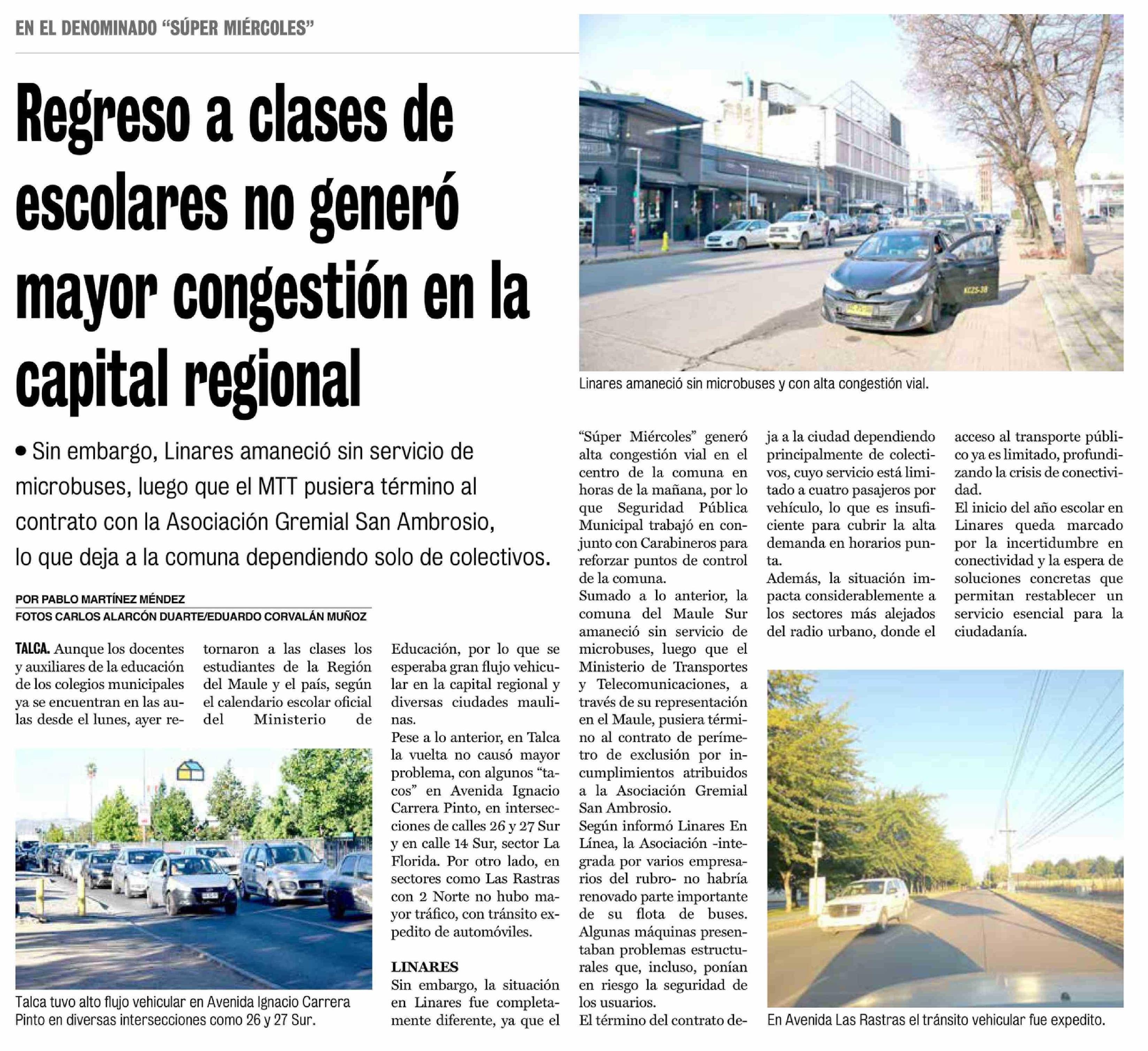 Regreso a clases de escolares no genero mayor congestión en la capital regional