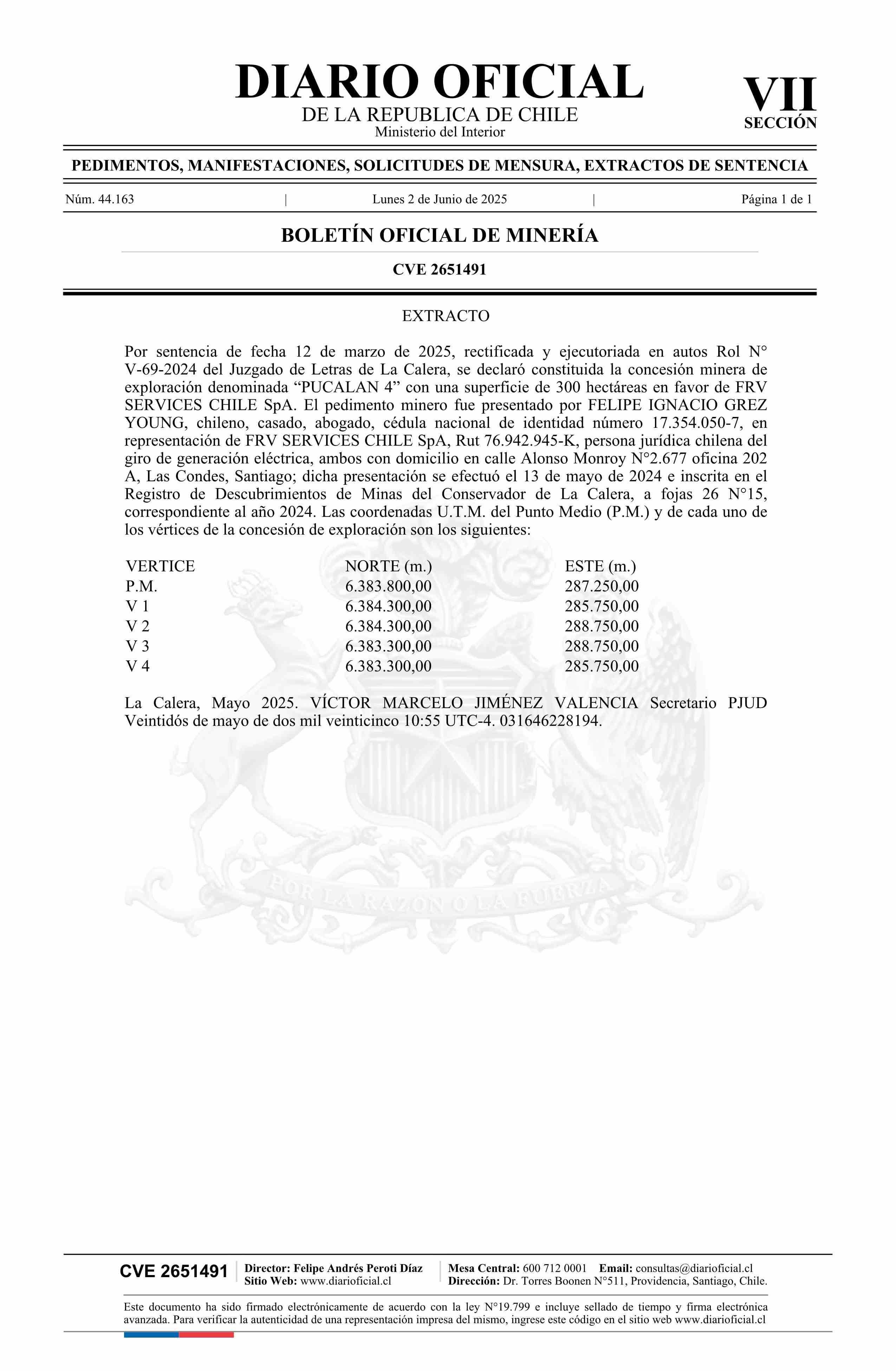 DIARIO OFICIAL CHILE - BOLETÍN OFICIAL DE MINERÍA (DIARIO OFICIAL CHILE – BOM – SENTENCIAS EXPLORA)