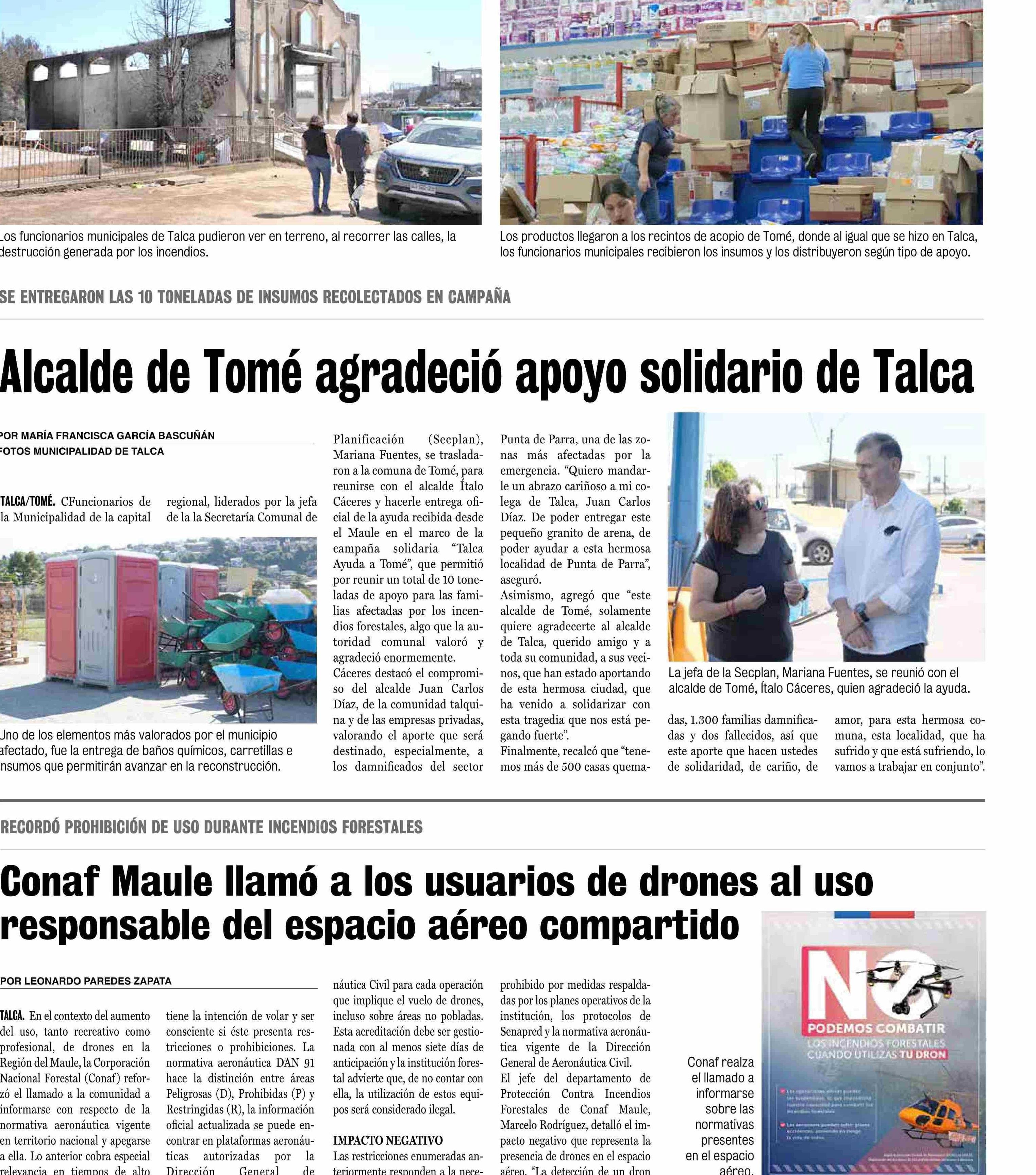 Alcalde de Tome agradeció apoyo solidario de Talca