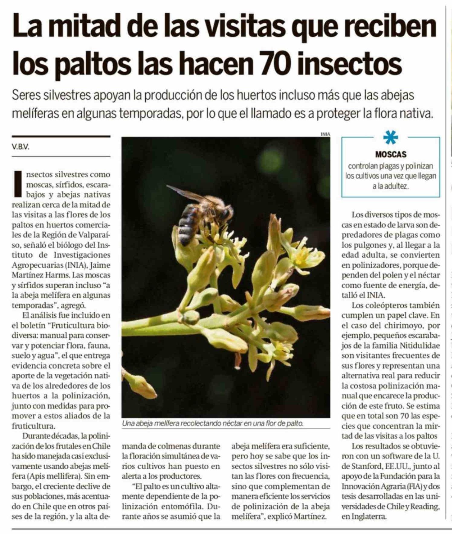 Título: La mitad de las visitas que reciben los paltos las hacen 70 insectos