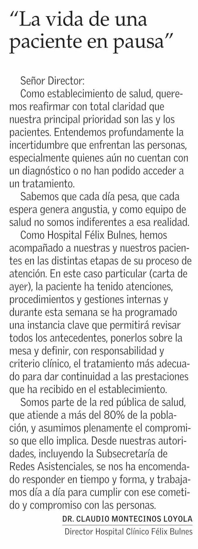 Cartas: “La vida de una paciente en pausa”