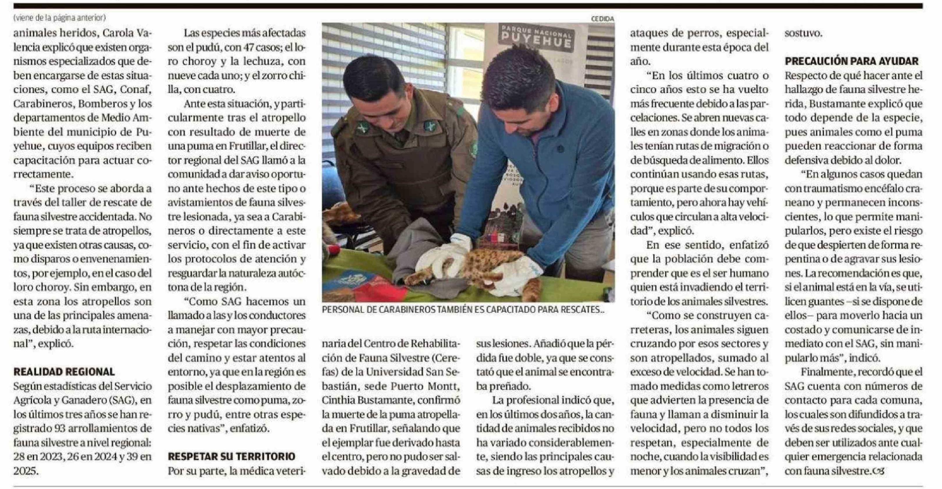 Crecen denuncias por atropellos a fauna nativa durante el 2025