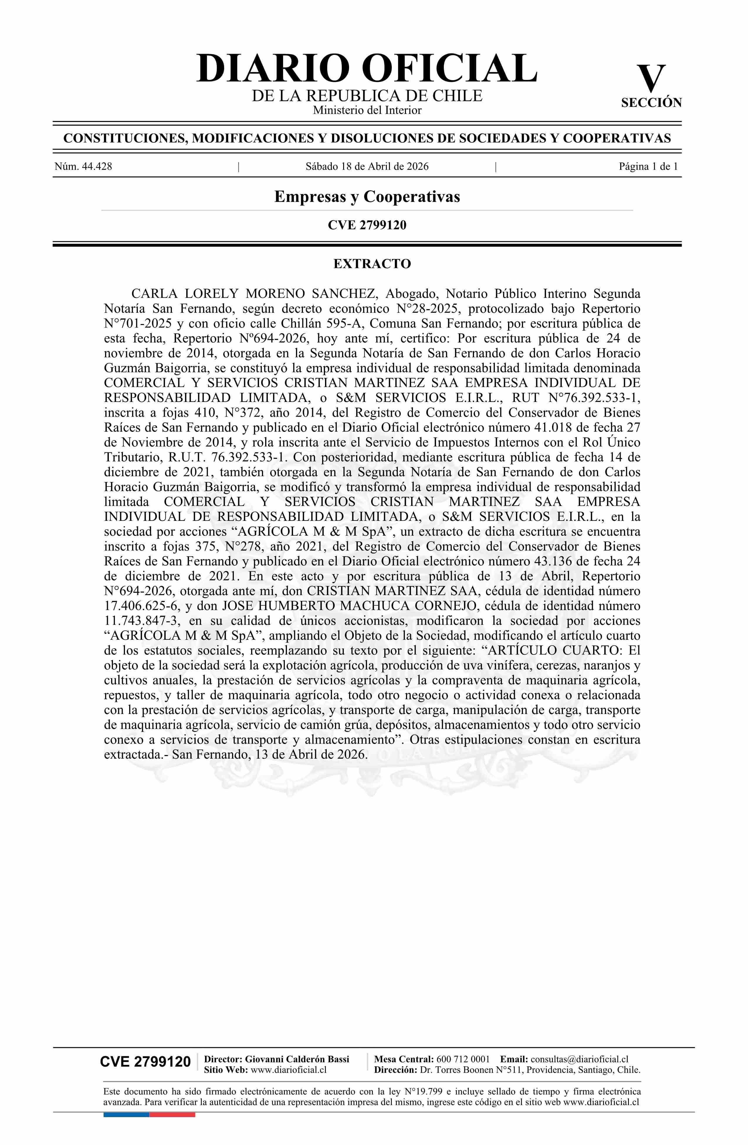 Título: COMERCIAL Y SERVICIOS CRISTIAN MARTINEZ SAA EMPRESA INDIVIDUAL DE RESPONSABILIDAD LIMITADA 76.392.533-1*