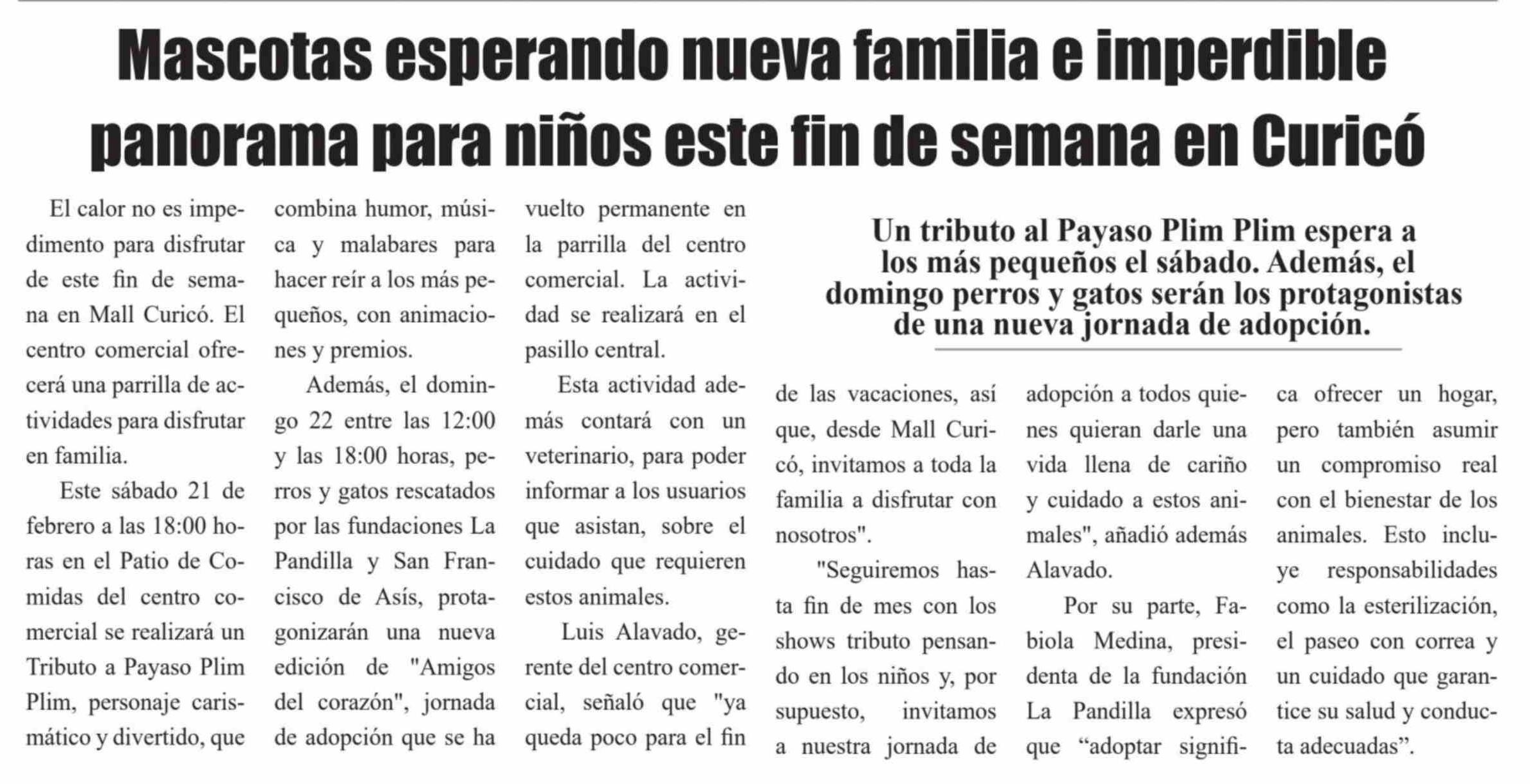 Mascotas esperando nueva familia e imperdible panorama para niños este fin de semana en Curicó