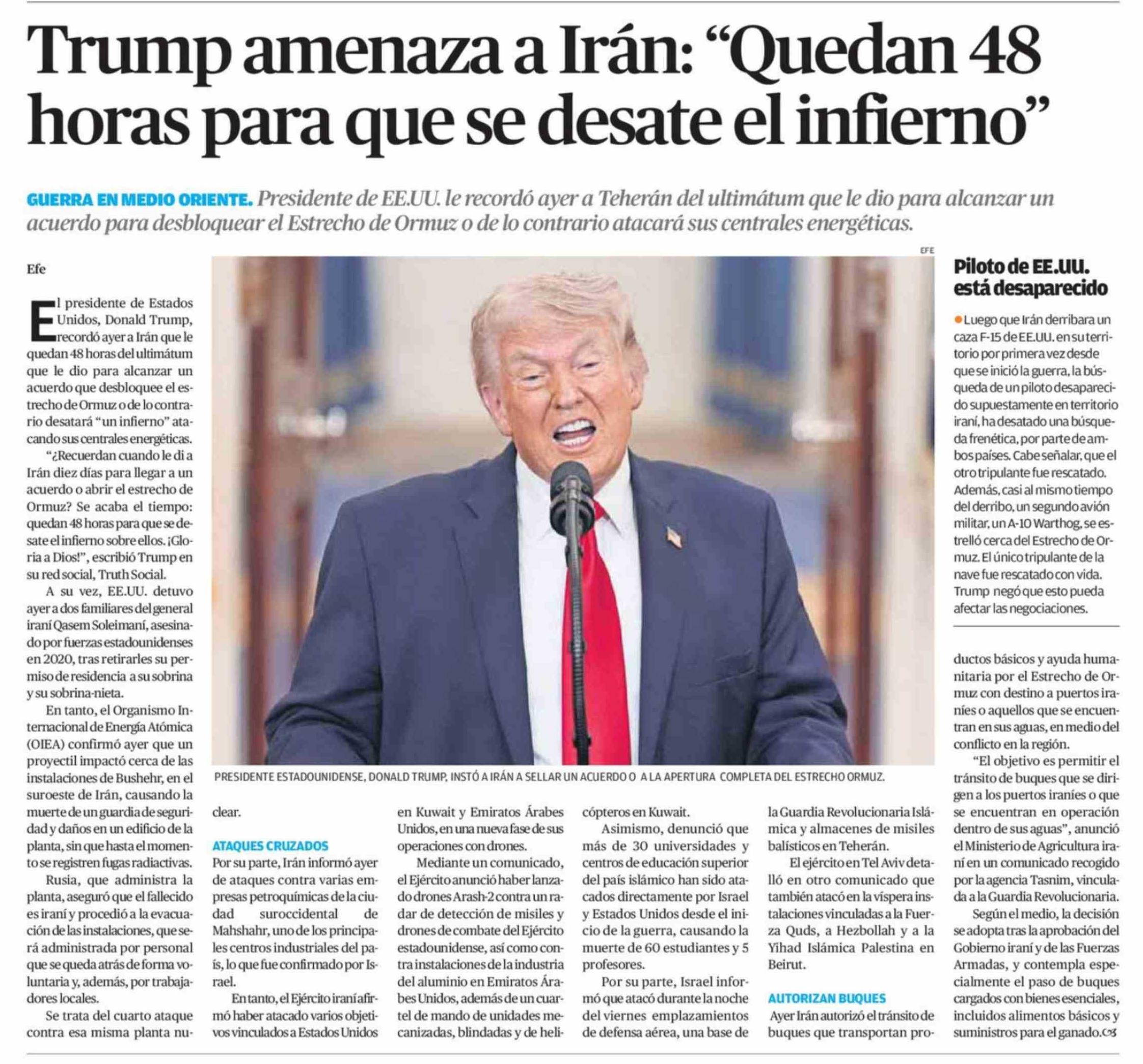 Trump amenaza a Irán: "Quedan 48 horas para que se desate el infierno"