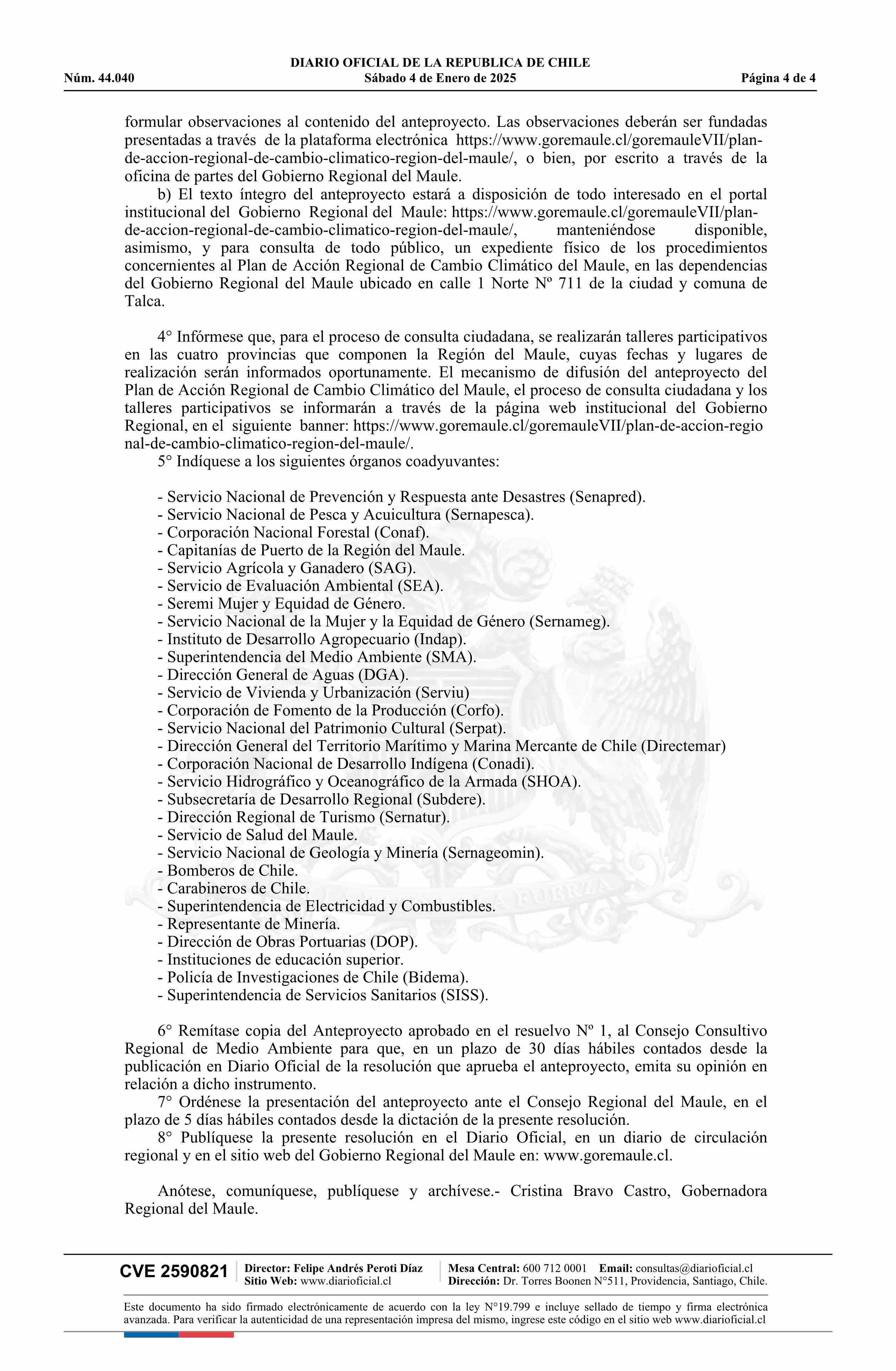| Título: | Resolución exenta número 10.753, de 2024.- Aprueba el anteproyecto del Plan de Acción Regional de Cambio Climático de la Región del Maule |