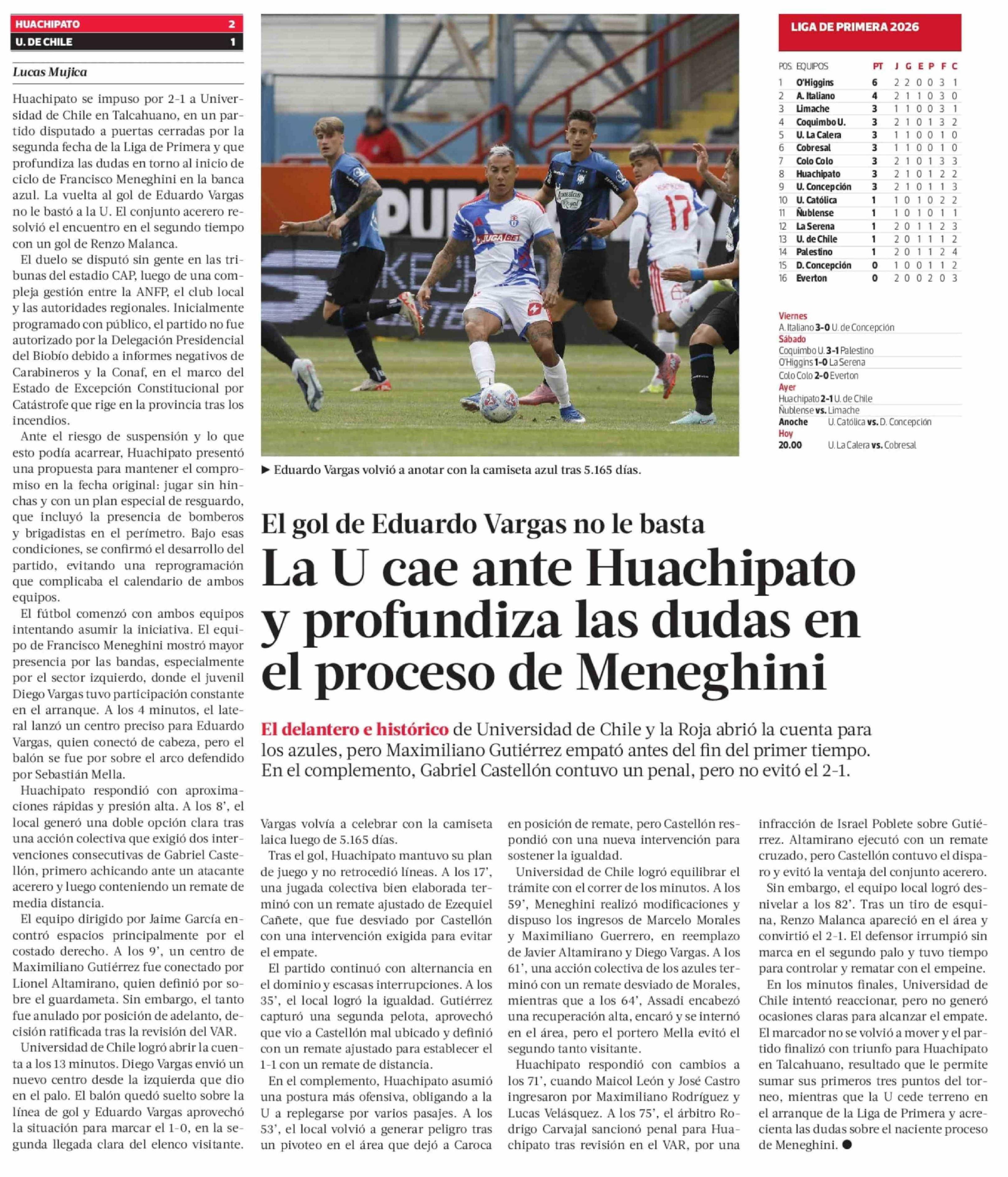 La U cae ante Huachipato y profundiza las dudas en el proceso de Meneghini