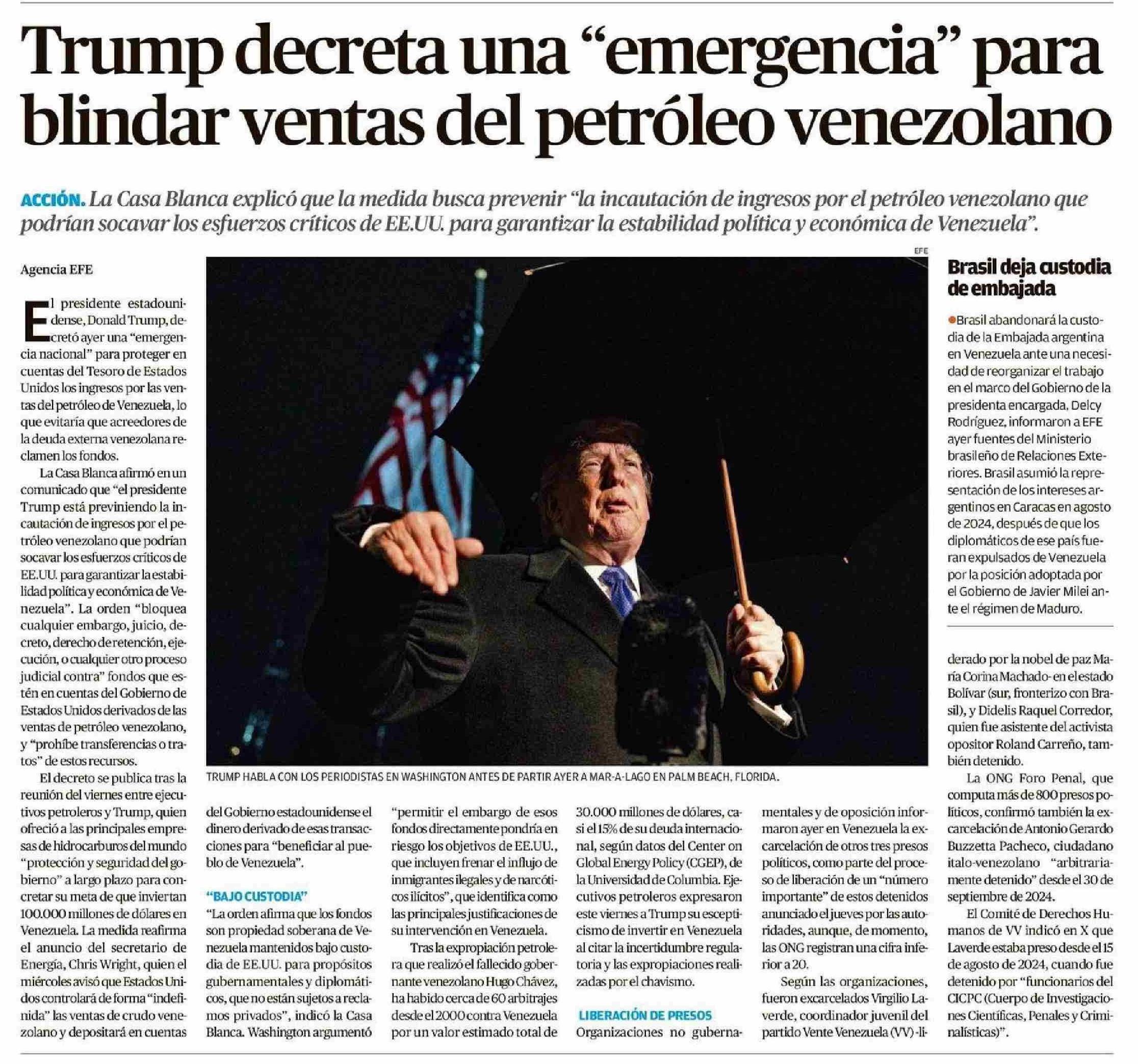 Trump decreta una "emergencia" para blindar ventas del petróleo venezolano
